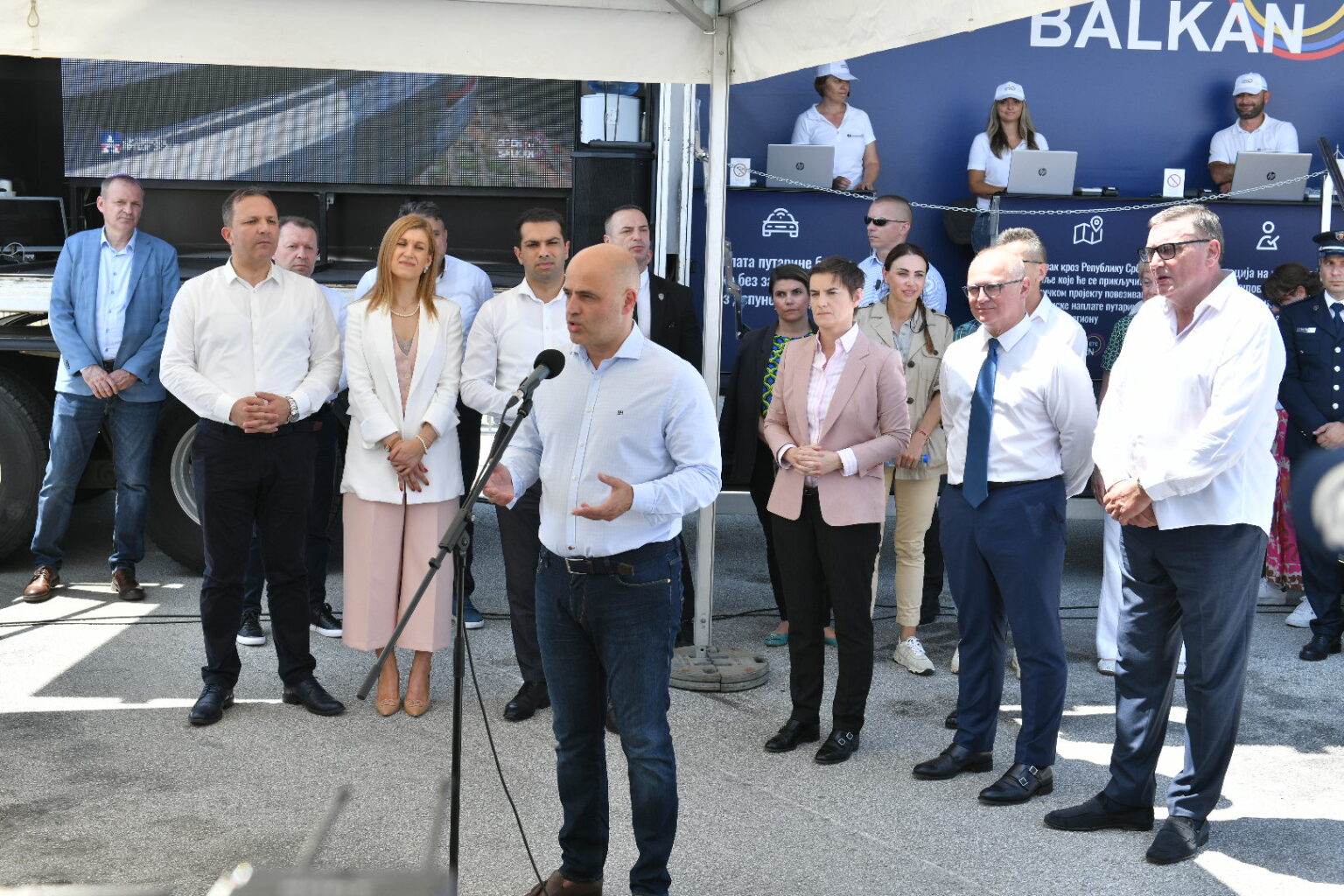 Премиерите на Македонија и на Србија, Димитар Ковачевски и Ана Брнабиќ го промовираа денеска заедничкиот интегриран електронски систем за наплата на патарините што беше инициран од „Отворен Балкан“, на наплатната рампа Прешево – мобилно продажно место.