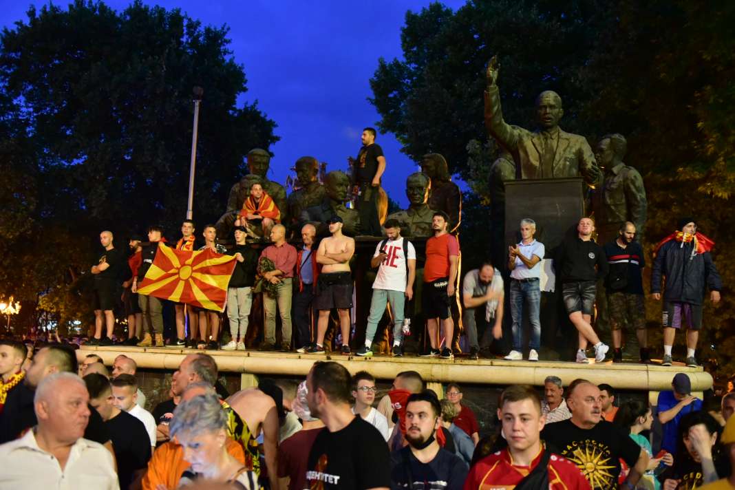 Голема група граѓани го поминаа мостот на реката Вардар и продолжија кон зградата на Министерството за надворешни работи.