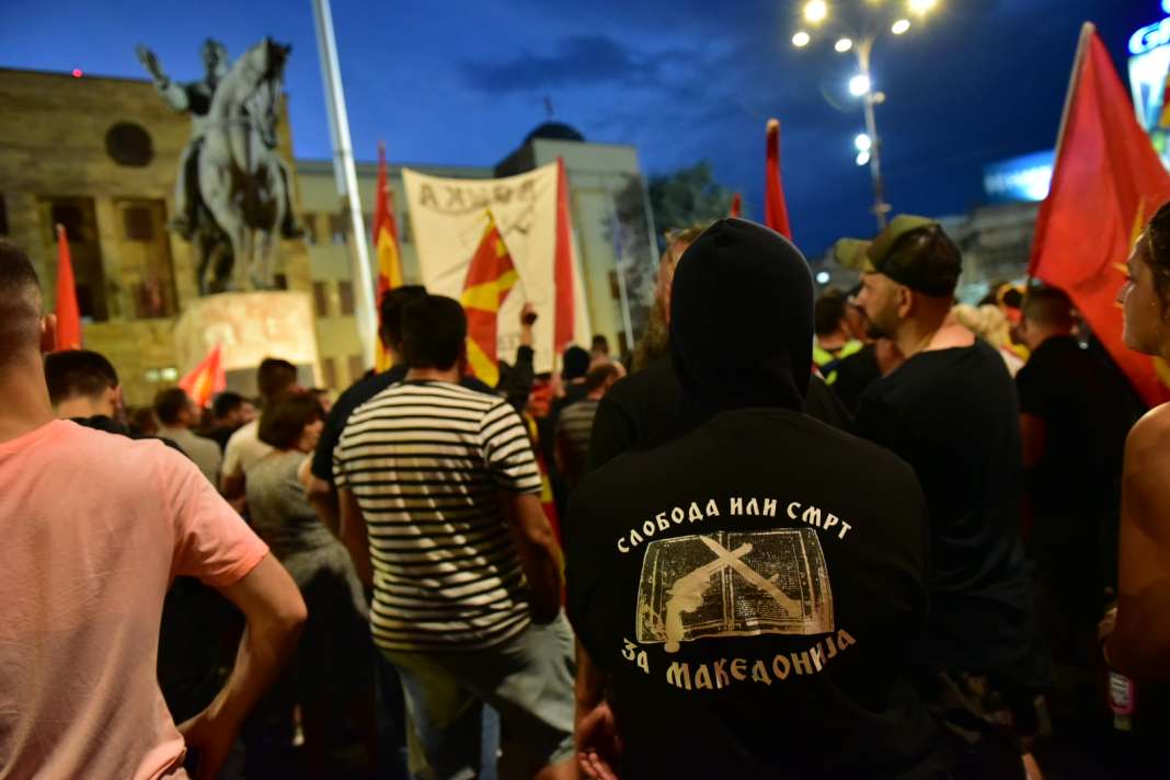 И покрај дождот и оваа вечер продолжи протестот против францускиот предлог, што се одржува пред Владата.