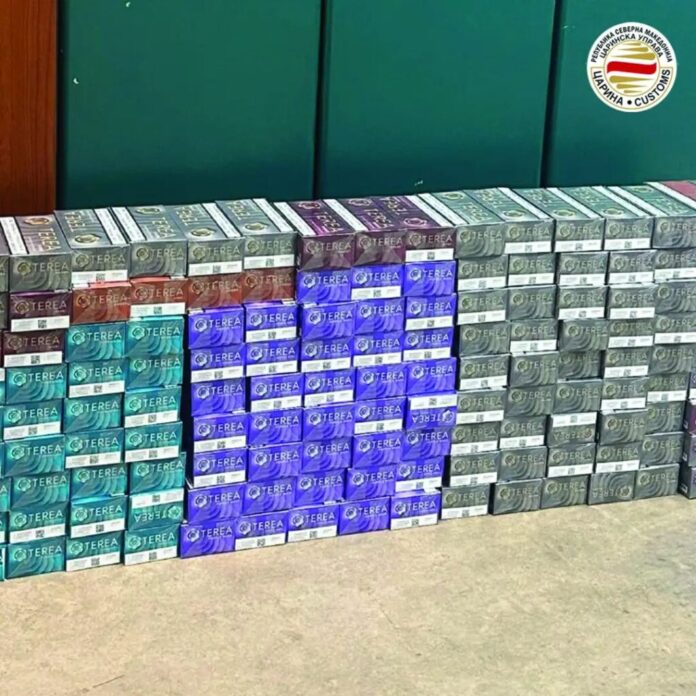 Мобилни царински тимови изминативе денови спречија повеќе прекршочни дела при што запленети се 160 штеки цигари, 1.512 метри квадратни теписи, 100 килограми препарати за добиток, 665 парчиња гелови за нокти, три комплети германски регистарски таблички и сообраќајни дозволи, 80 парчиња облека со потпис на познати трговски марки, девизи и очила за сонце, соопштија од Царинската управа.