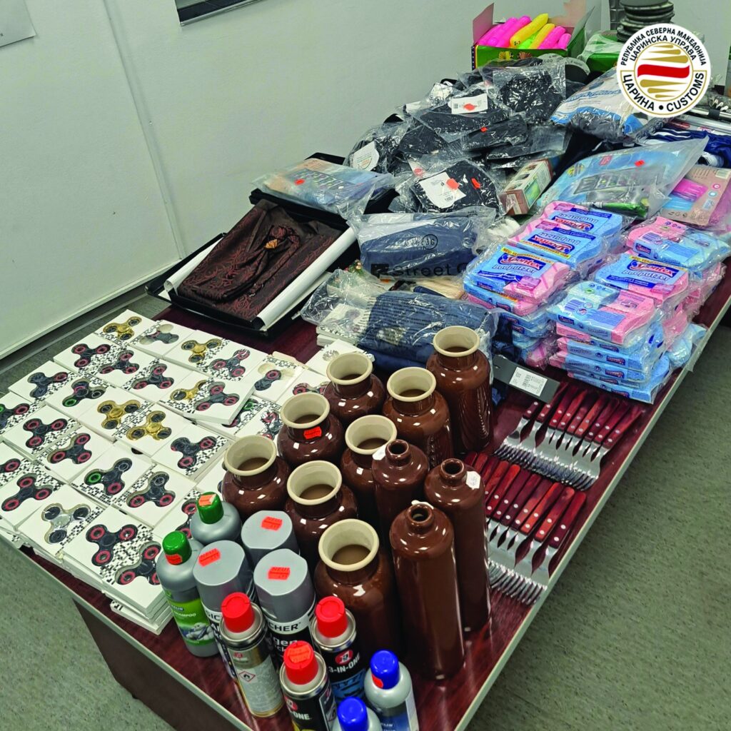 Царинските службеници и мобилните тимови на граничните премини Блаце, Табановце, Богородица и Ново Село во изминатиот период запленија речиси три илјади парчиња различна стока – меѓу кои алкохолни пијалоци, електронски цигари, облека со потпис на заштитени трговски марки, и автоделови пронајдени во возила, автобуси и товарни моторни возила.