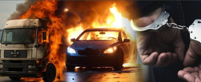 Министерството за внатрешни работи информира дека на осми месецов во 02:20 часот во СВР Скопје е пријавено дека на паркинг простор од Спортскиот центар „Јане Сандански“ на подрачје на општина Аеродром во Скопје биле опожарени товарно возило „ивеко“ со скопски регистарски ознаки и товарно возило „рено“ со скопски регистарски ознаки, двете сопственост на правно лице од Скопје и патничко возило „опел“ со прилепски регистарски ознаки, сопственост на Е.С. од Прилеп.