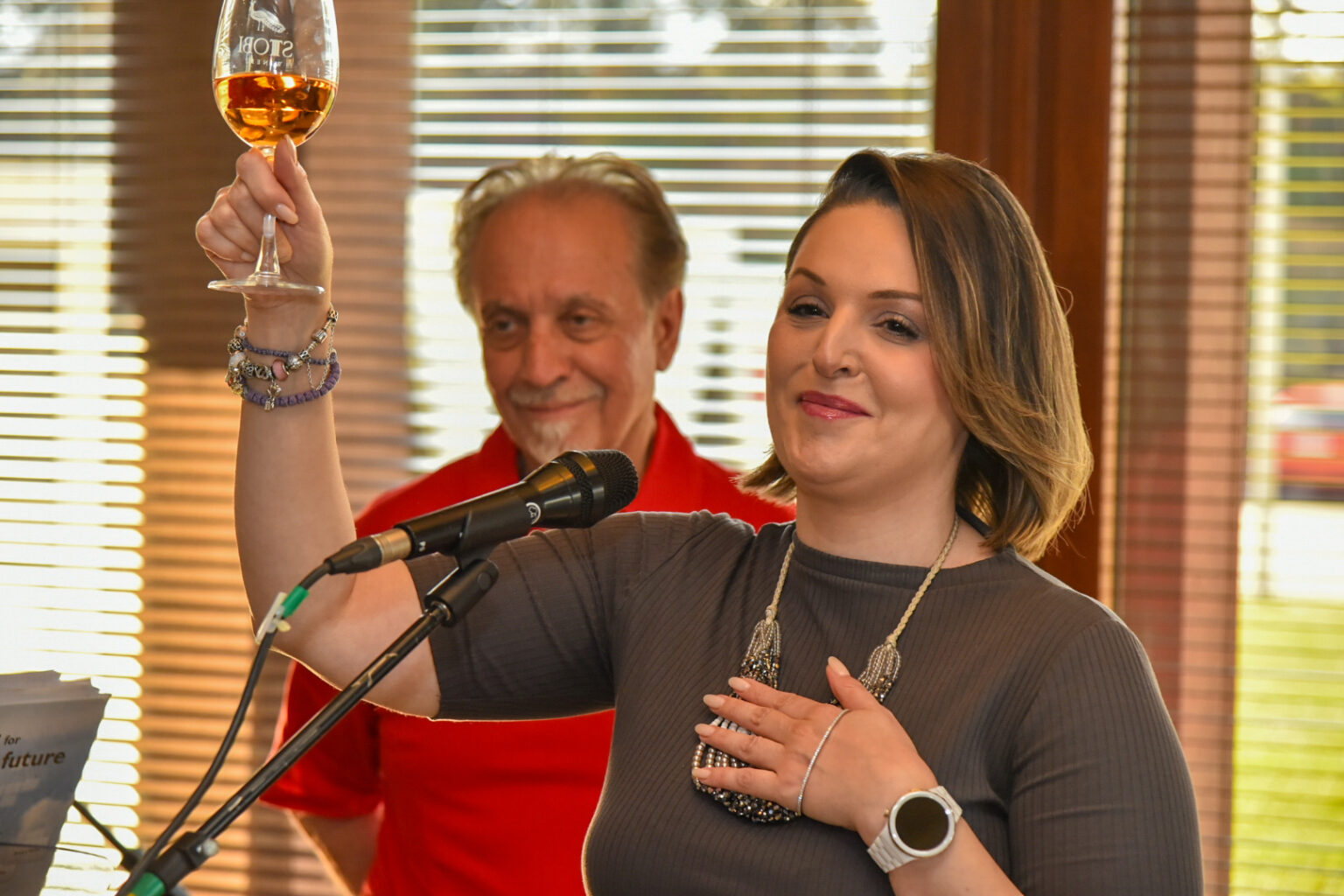 Голема благодарност за убавата дружба, енергија, топлина и споделена љубов која зрачеше од сите нас. Ноти на благо вино, музика и искрени насмевки, напиша Елизабета Петковска, лице со Даунов синдром, на Фејсбук, по настанот во саботата чиј домаќин беше винаријата „Стоби“. На забавата од хуманитарен карактер за меѓусебно дружење и незаборавни моменти на лицата со Даунов синдром, за атмосферата, освен домаќините и гостите, се погрижија и артисти од македонската музичка естрада.