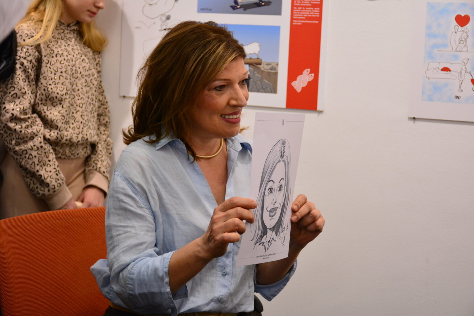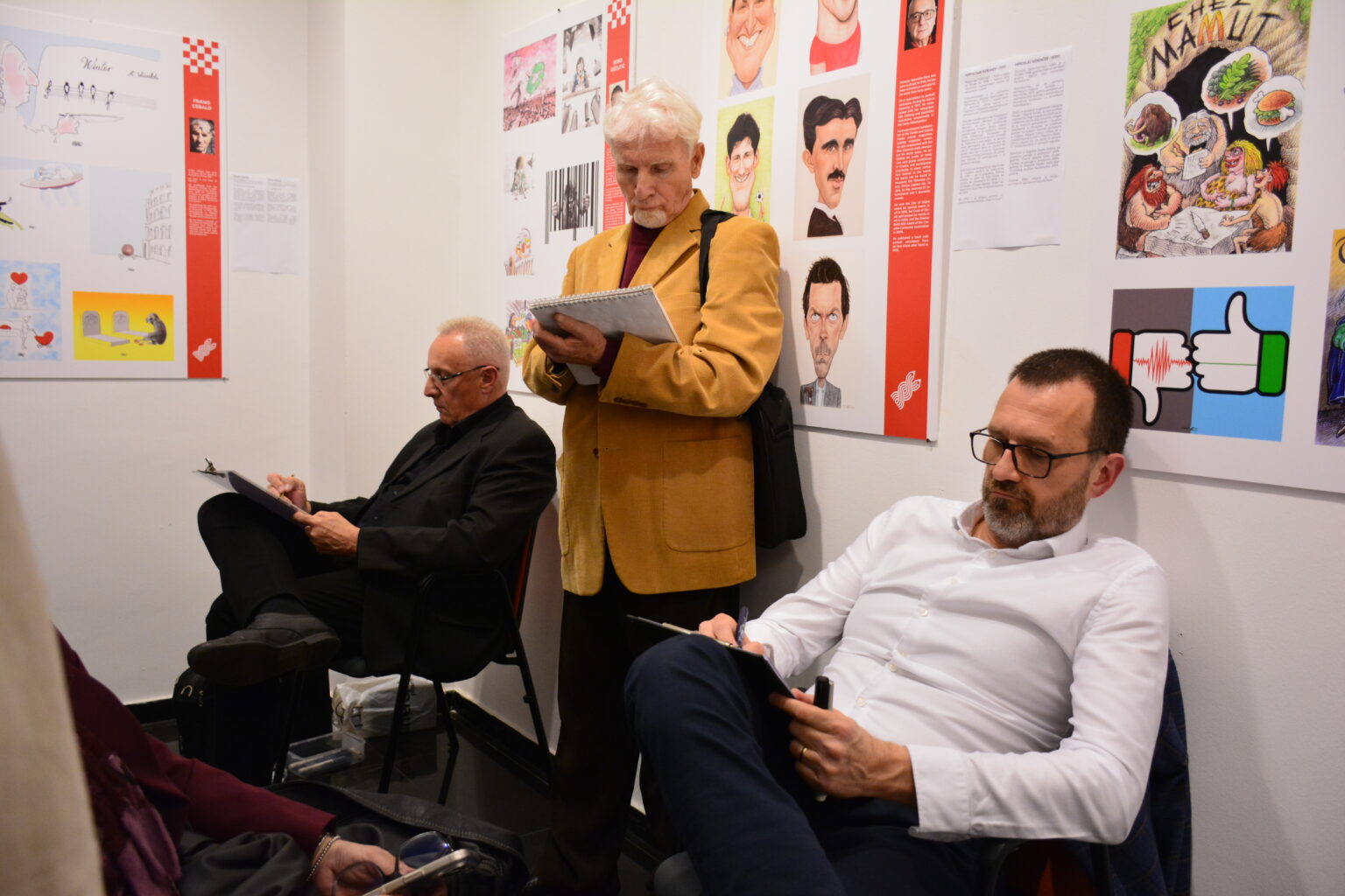 Во Галерија „Остен“ вчера беше отворена изложба на карикатури од членови на Хрватско друштво на карикатуристи (ХДК). На изложбата се претставуваат бројни еминентни автори, меѓу кои Франо Чебало, Миро Георгиевски, Мирослав Геренчер, Роко Иџојтиќ, Драгутин Ковачевиќ, Крешимир Квештек, Милан Лекиќ, Мила Лончар, Мојмир Михатов, Живко Нимац, Зринка Остовиќ, Петар Писместровиќ, Никола Плечко, Зденко Пухин, Среќко Пунтариќ, Предраг Рајчевиќ, Иван Саболиќ и Даворин Трговчевиќ. Изложбата ја отвори хрватската амбасадорка во Македонија Нивес Тигањ. Бројната публиката имаше можност да ужива во богат избор на карикатури, зад кои стојат врвна уметничка вештина, но и долгогодишно пријателство меѓу ХДК и „Остен“-Скопје.