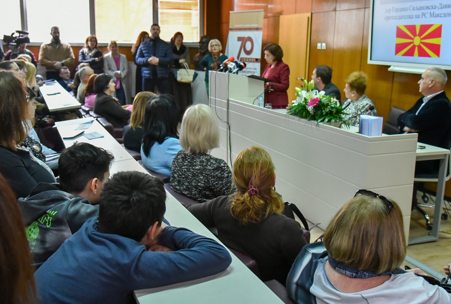 – Мора постојано да си се потсетуваме дека јазикот е темелот на идентитетот, јазикот е чувар на колективната меморија и јазикот е единствениот мост што нè води напред во иднината. Во него се запишани искуствата на сите минати генерации, во него се вградени стремежите на оние што ќе дојдат по нас. Овој ден не е само повод за одбележување туку и потсетник за одговорноста што ја имаме кон јазикот како кон непроценливо културно наследство и богатство и како кон моќно миротворно оружје. Да си го развиваме, да си го унапредуваме мајчиниот јазик во образованието, науката, културата, во дигиталниот простор и да создаваме услови тој да продолжи да се развива во чекор со современиот свет. Внимателно и одговорно да го користиме во јавниот простор – во медумите, во секојдневниот живот, и да сториме сè за научно проучување и вложување во него. Не се само институциите што треба да се грижат, туку секој поединец  со секој изговорен збор и напишана мисла, порача Сиљановска – Давкова.