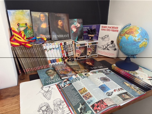 – Цртањето за мене представува повеќе од хоби, ме прави среќна и се чуствувам исполнета. Најчесто цртам портрети, мртва природа, како и делови од човечко тело, а во последно време моја пасија е јапонската стрип-уметност, цртам и читам манга-стрипови, кои во моментов се многу популарни кај нас. Освен цртањето, слушам музика, многу сакам да возам ролери и велосипед. Во зима со моето семејство одиме на скијање, а цел летнен распуст го поминувам во Охрид, секој ден сме на плажа каде што пливаме и нуркаме во Охридското Езеро – објаснува Каја.