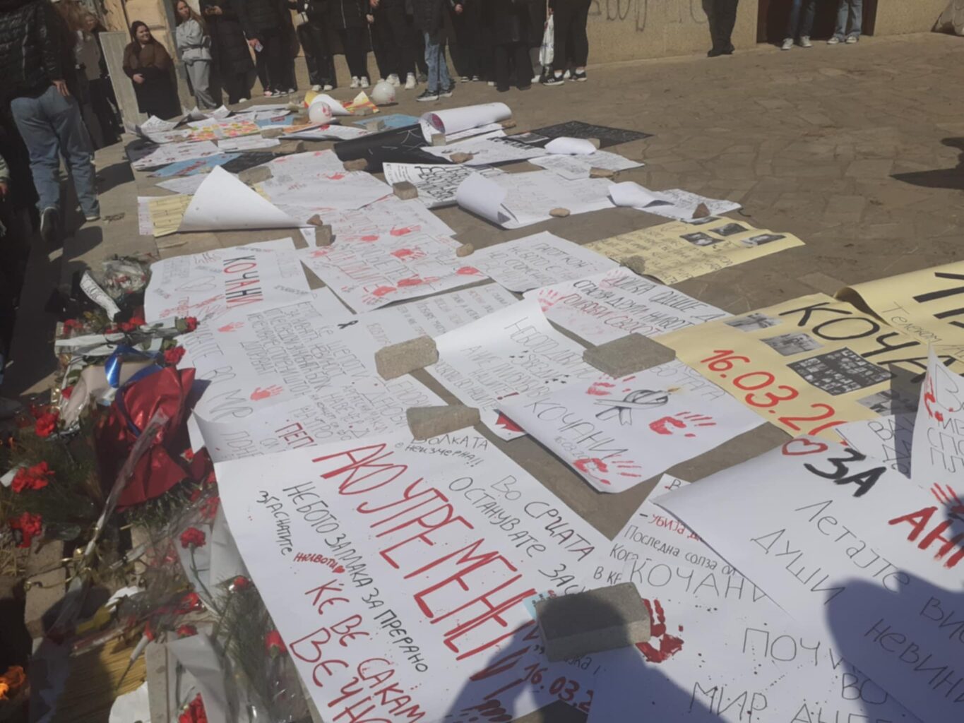 Средношколците од Кичево денеска се собраа во центарот на градот, запалија свеќи, положија свежо цвеќе и поставија пароли на платото пред музејот.