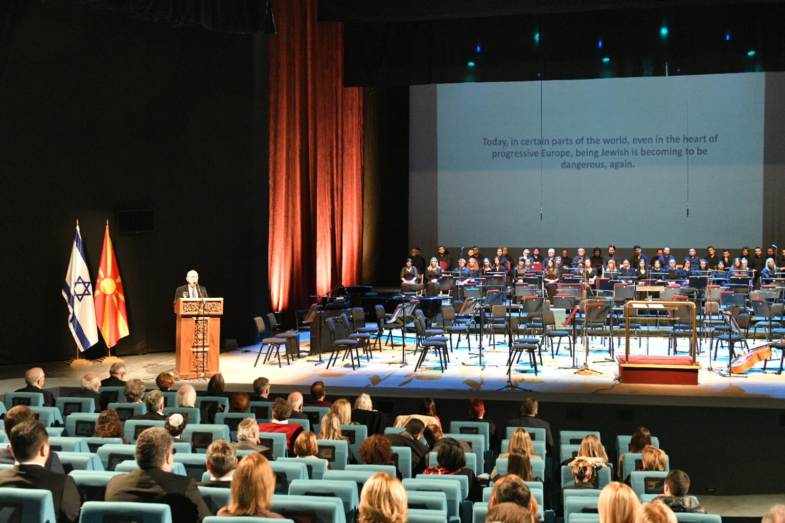 -Никогаш повеќе антисемитизам, расизам и ксенофобија. Никогаш повеќе фашизам. Оваа јасна и категорична порака ја упатувам вечерва со мирна совест бидејќи нашата историја исто како и сегашноста докажуваат дека сме секогаш на вистинската страна на историјата – демократи за кои никој не е и не може да биде помалку важен. И затоа имаме и морално право, но и вредности за да се спротиставиме на сите различни форми на говор на омраза и нетолерација – рече Ковачевски.