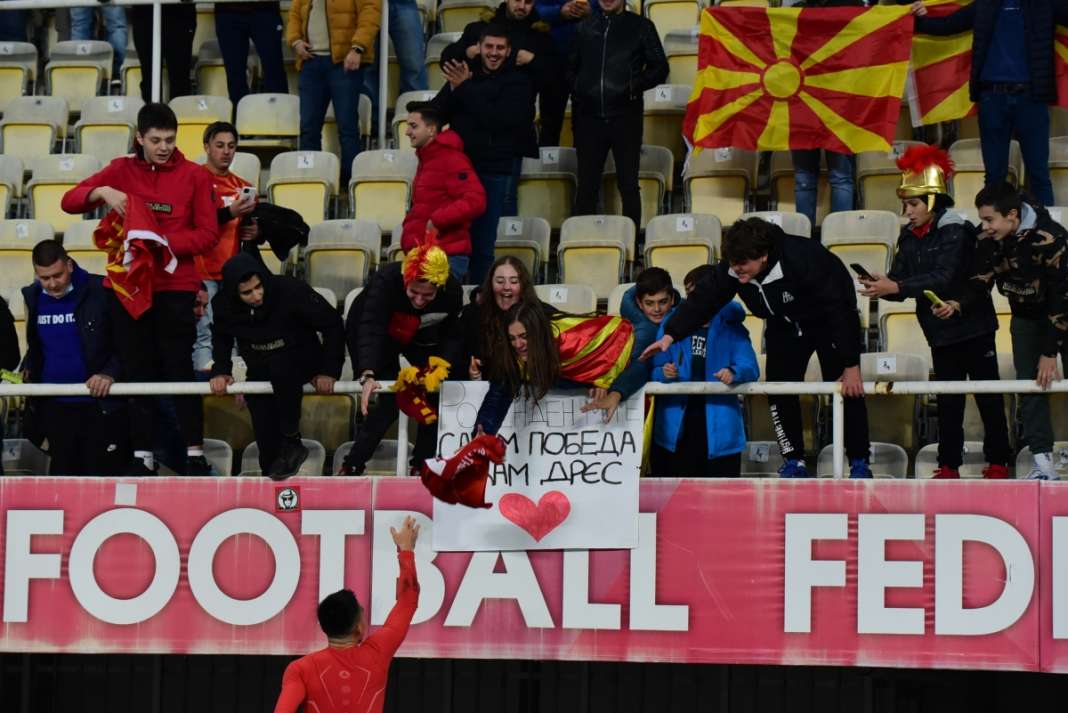 Атмосферата на Арената „Тодор Проевски“ по влезот во баражот за ЕП