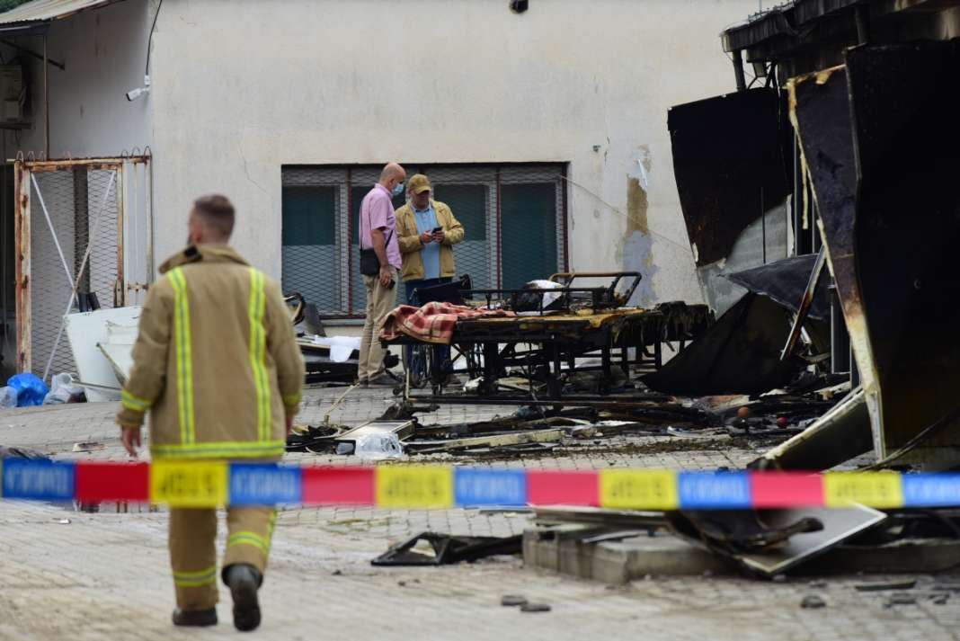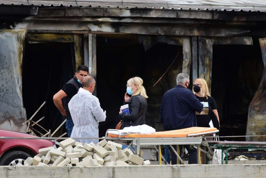 Увид по пожарот во модуларната болница во Тетово / Фото: Игор Бансколиев