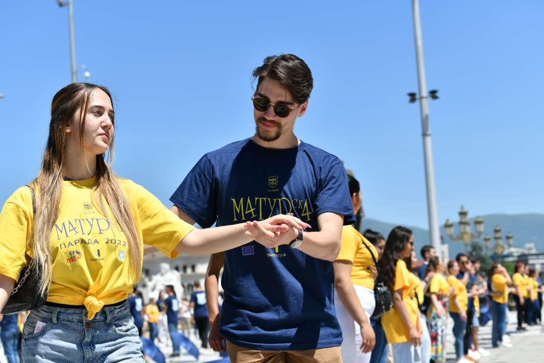 На парадата учествуваат речиси сите матуранти од средните училишта во Скопје заедно со нивните врсници од триесетина градови во Словенија, Словачка, Унгарија, Србија, Црна Гора.