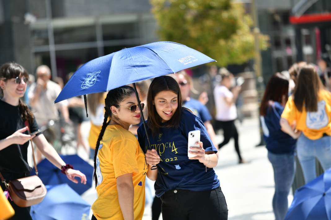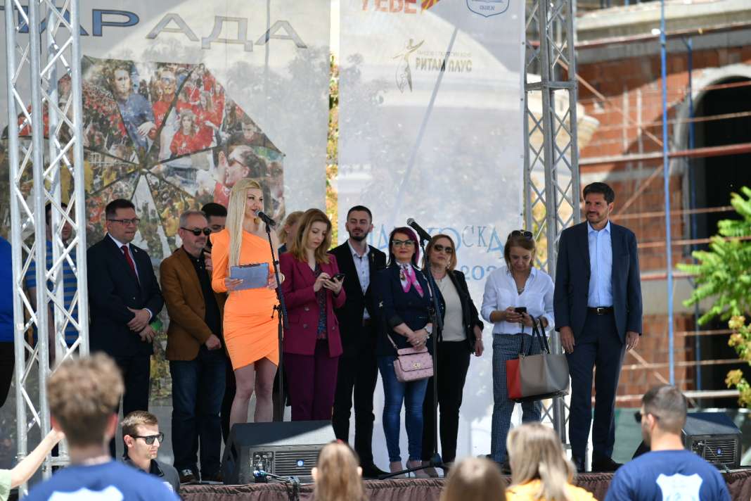 Присутните матуранти ги поздрави градоначалничката на град Скопје, Данела Арсовска, заменик-амбасадорот на ЕУ, Џулијан Васало, и Деканот на универзитетот за туризам и менаџмент, Сашко Драматниковски.