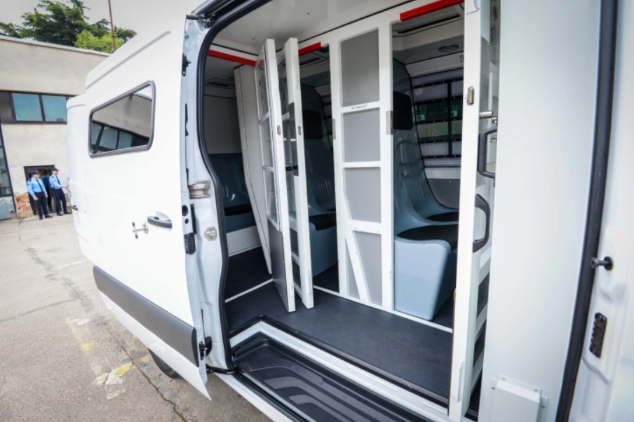 Донацијата се состои од две специјализирани комбиња за превоз на затвореници и мигранти, кои ќе бидат ставени во функција на Одделот за гранични работи и миграции при Бирото за јавна безбедност.