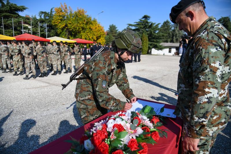 – Не само врвните воени познавачи, туку и обичните луѓе во секојдневните грозоморни слики препознаваат сериозна опасност од конфликт, од глобални размери со непредвидливи и несогледливи последици по човештвото. Низ геополитички, но и хуманистички агол мора да изразиме огромна загриженост во воениот ек и опкружување. Свесни сме за улогата на безбедносниот чадор, но и за потребата од инвестирање и развивање во сопствената Армија. Убедена сум дека нема конфликт за кој не може да се постигне мирно решение, што поскоро, тоа по добро. Верувам дека ние, поучени од крвавата историја, ја научивме мировната философија и дека нема да дозволиме воени судири на нашето тло. Посакувам припадниците на Армијата, вие, да бидете ангажирани во мировни, а не во воени операции и активности во некое идно време – додаде претседателката.