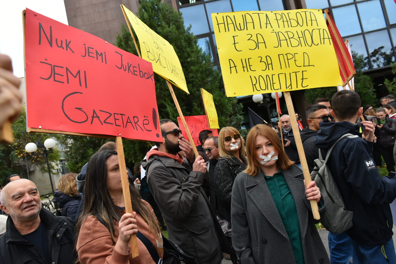 „Нашата работа е за во јавност, а не за пред колегите”, „Новинарството на удар, ние сме обединети”, „Модуларно судство”, „Цензори во име на моќниците” и „Осудени за вистината”, се дел од паролите со кои денеска пред Граѓанскиот суд во Скопје новинарите одржаа протест поради пресудата за Истражувачката репортерска лабораторија (ИРЛ). Протестот е организиран од Здружението на новинари на Македонија (ЗНМ) и Самостојниот синдикат на новинари и медиумски работници (ССНМ).