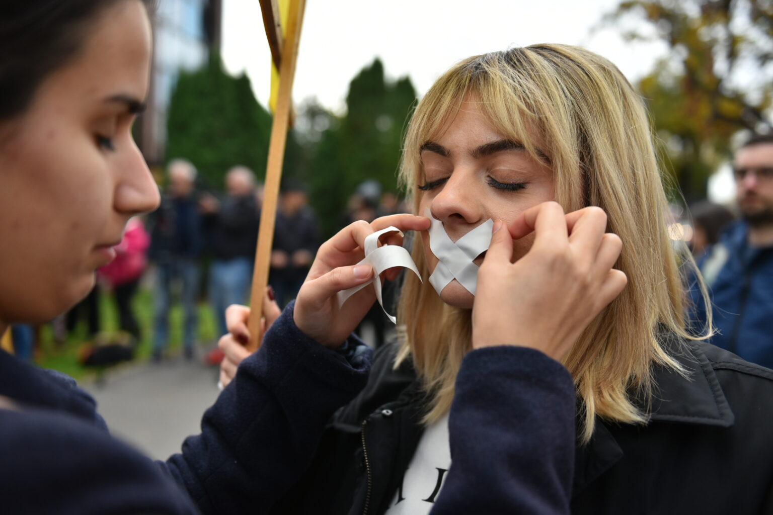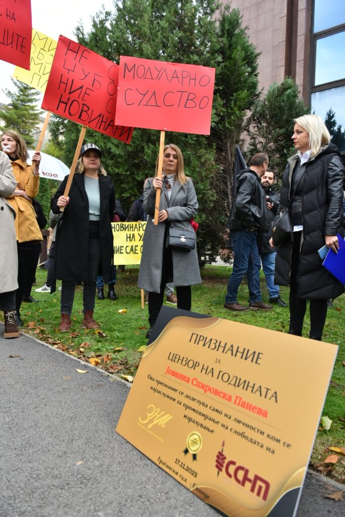 Биљана Настеска Каланоска од ЗНМ на протесот изјави дека ќе испратат барање до судиите од граѓанскиот и апелациониот суд за поголемо разбирање и сериозност, внимателност во постапките и тужбите против новинарите и медиумските работници во државата.