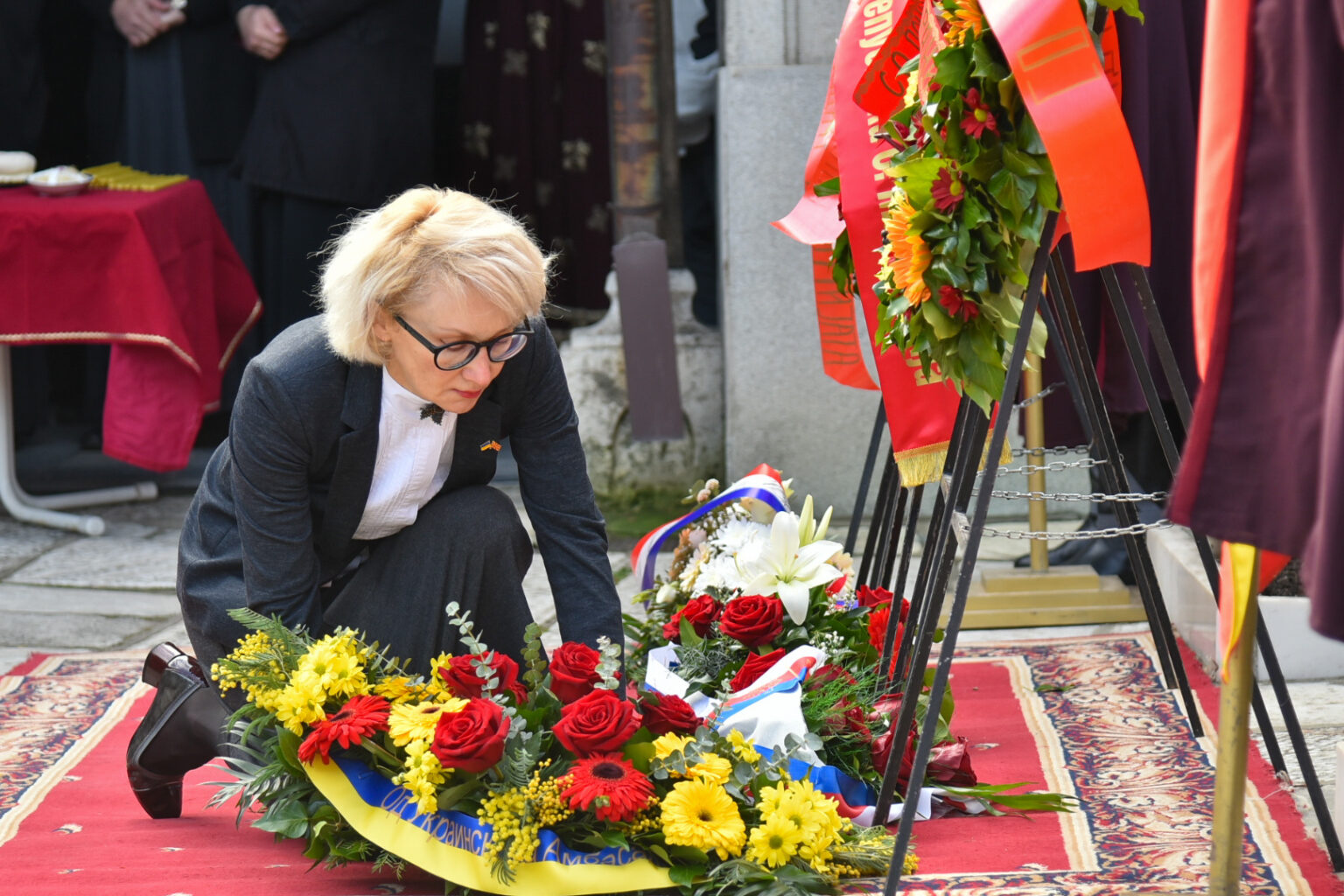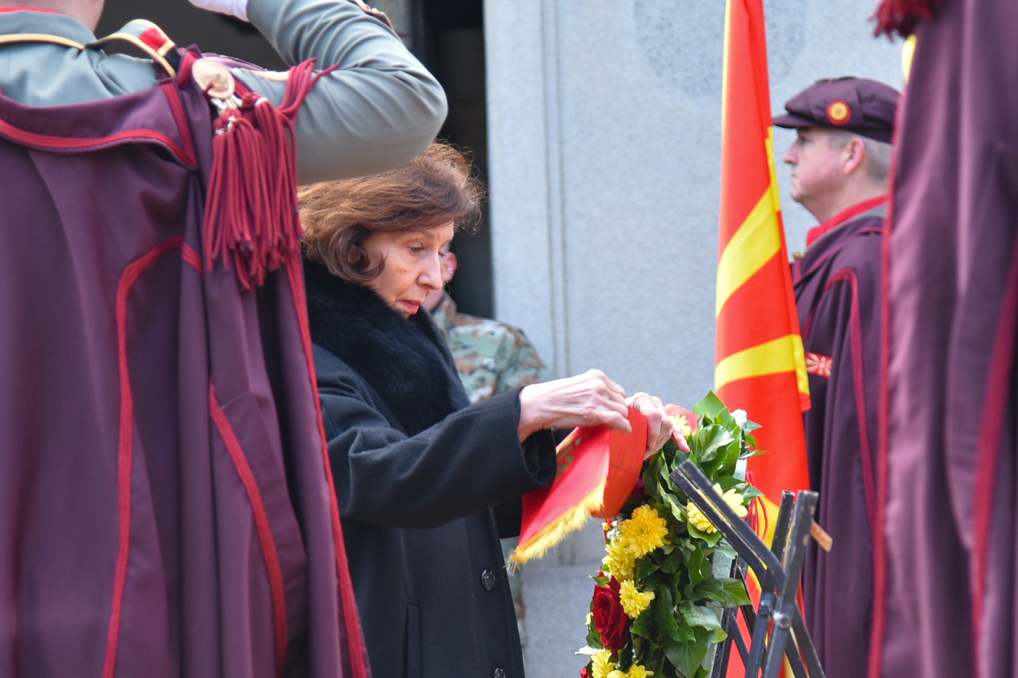 Делегација на Град Скопје предводена од градоначалничката Данела Арсовска положи цвеќе пред споменикот на Гоце Делчев во Градскиот парк.