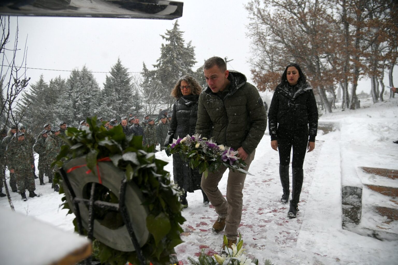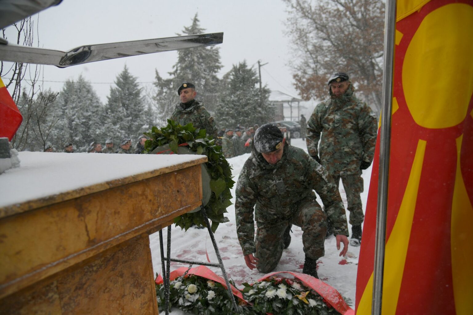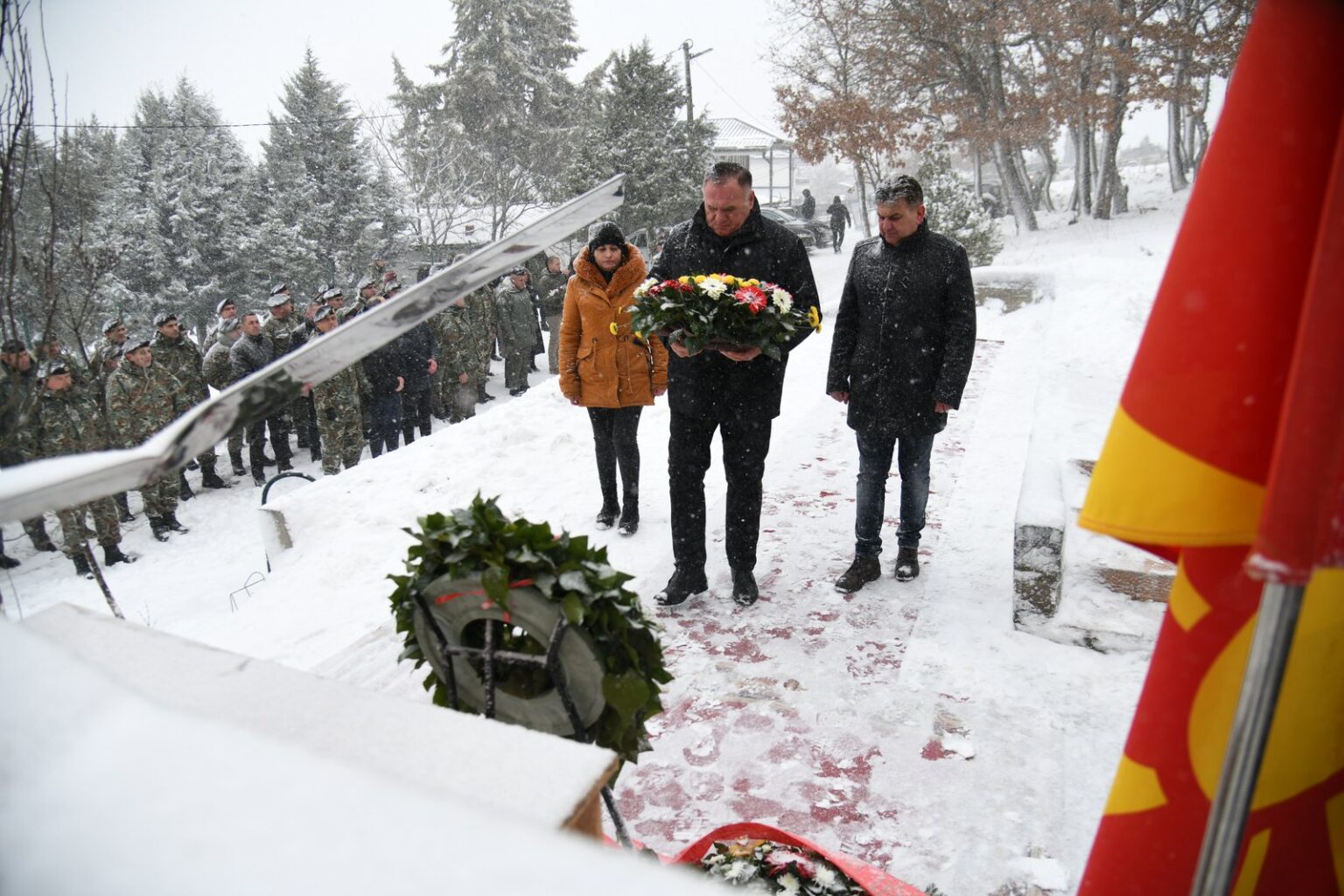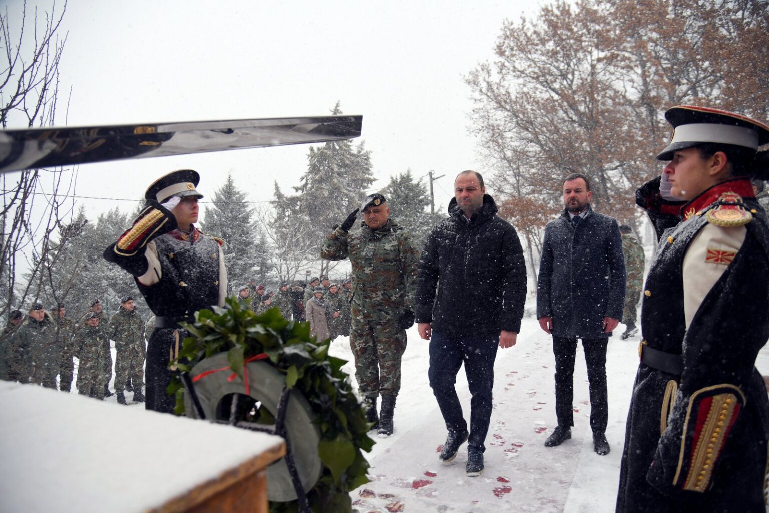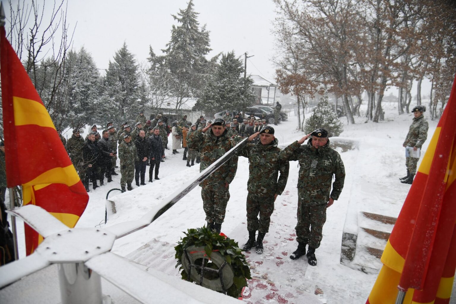 Како што соопштија од Министерството за одбрана, почит на загинатите им оддадоа делегации од МО и Генералштабот на Армијата, предводена од министерот за одбрана Владо Мисајловски и началникот на Генералштабот на Армијата, генерал-мајор Сашко Лафчиски, од Командата за операции, 1.пешадиска бригада, воздухопловниот ВИНГ, од општината Петровец, како и членовите на семејствата.
