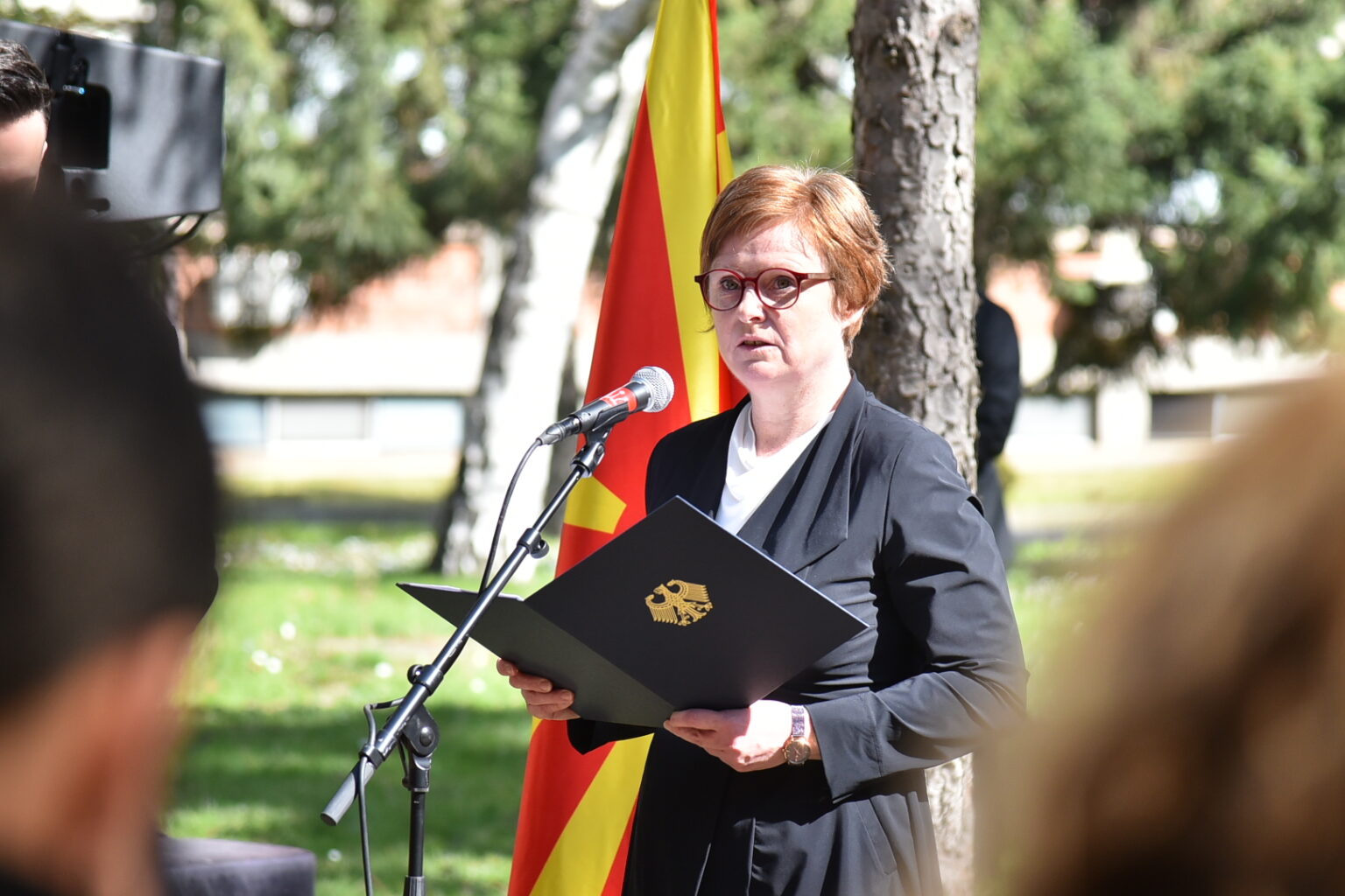 Германската амбасадорка Петра Дрекслер рече дека како претставник на Германија е длабоко трогната од можноста да се обрати на одбележувањето, нагласувајќи дека Холокаустот претставува злосторство против човештвото за кое историската одговорност на нацистичка Германија е неспорна.