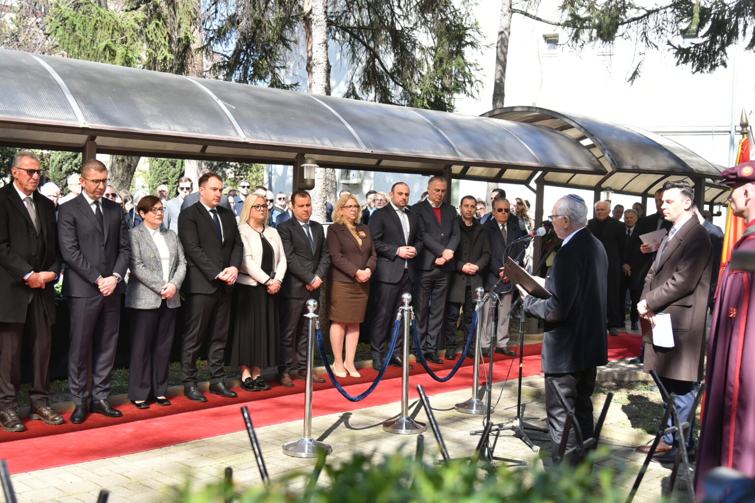 – Во март 1943 година повеќе од седум илјади наши сограѓани – Евреи од Скопје, Битола и Штип – беа насилно одземени од своите домови и депортирани во логорот Треблинка, каде што нивните животи беа сурово прекинати. Зад оваа бројка стојат имиња, семејства и судбини, луѓе кои биле дел од ткивото на нашите градови и од духот на Македонија – истакна Мицкоски.