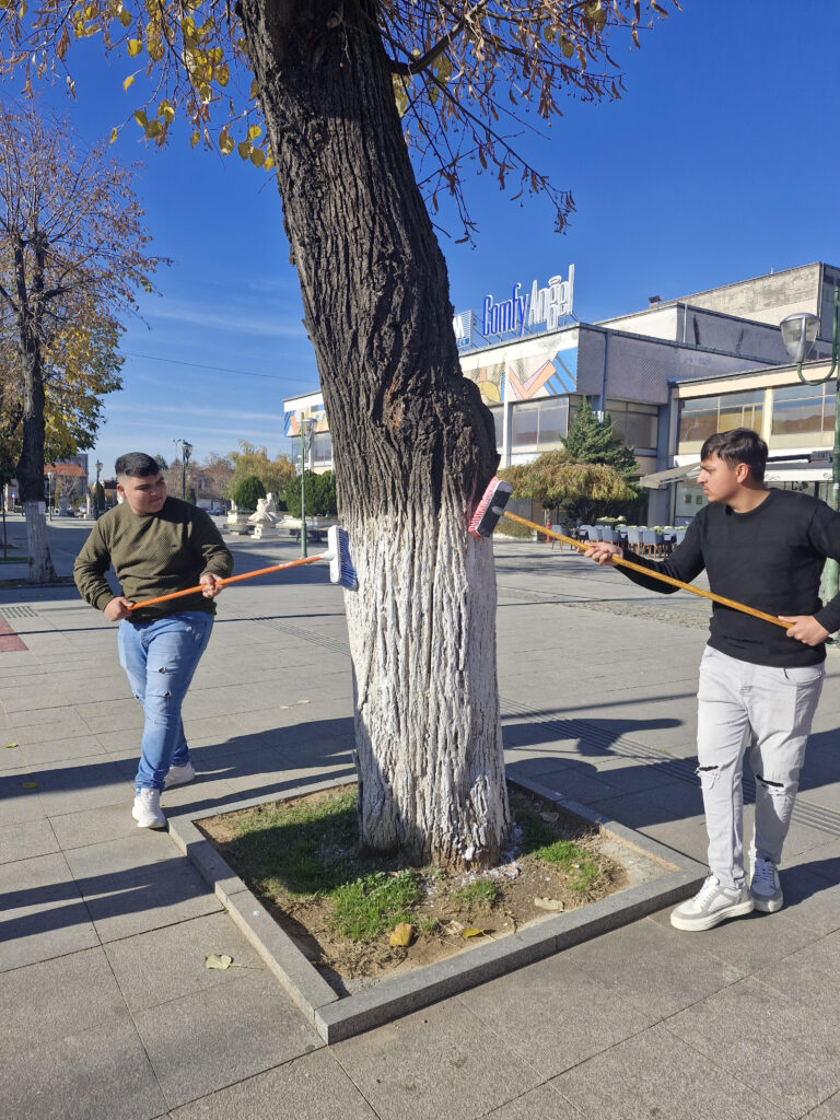 Во акцијата се вклучија и младите, ученици од училиштата, кои покажаа како треба да се грижат за природата, а воедно ги фарбаа дрвјата по булеварот.