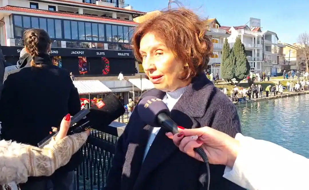 – Осветувањето на водите на Дрим, е прекрасно, како да сте покрај Јорадан, Дрим многу му личи, да личи на Јордан. Честитки за победникот, но и за сите, и оние кои се натпреваруваа, и оние кои го следа како мене. Гледате колку е силна вербата. Гледам одовде до другиот мост скокаат луѓето. Се разбира не е можно секој однив да го фати крстот, ама можно е да влезе во осветените води и да биде среќен. Мислам дека ова е нешто што не прави посилни, не прави подобри луѓе, не прави подобри верници, бидејќи ова е моментот кога Бог се јавил и тоа во сите свои три лика – изјави Силјановска-Давкова.