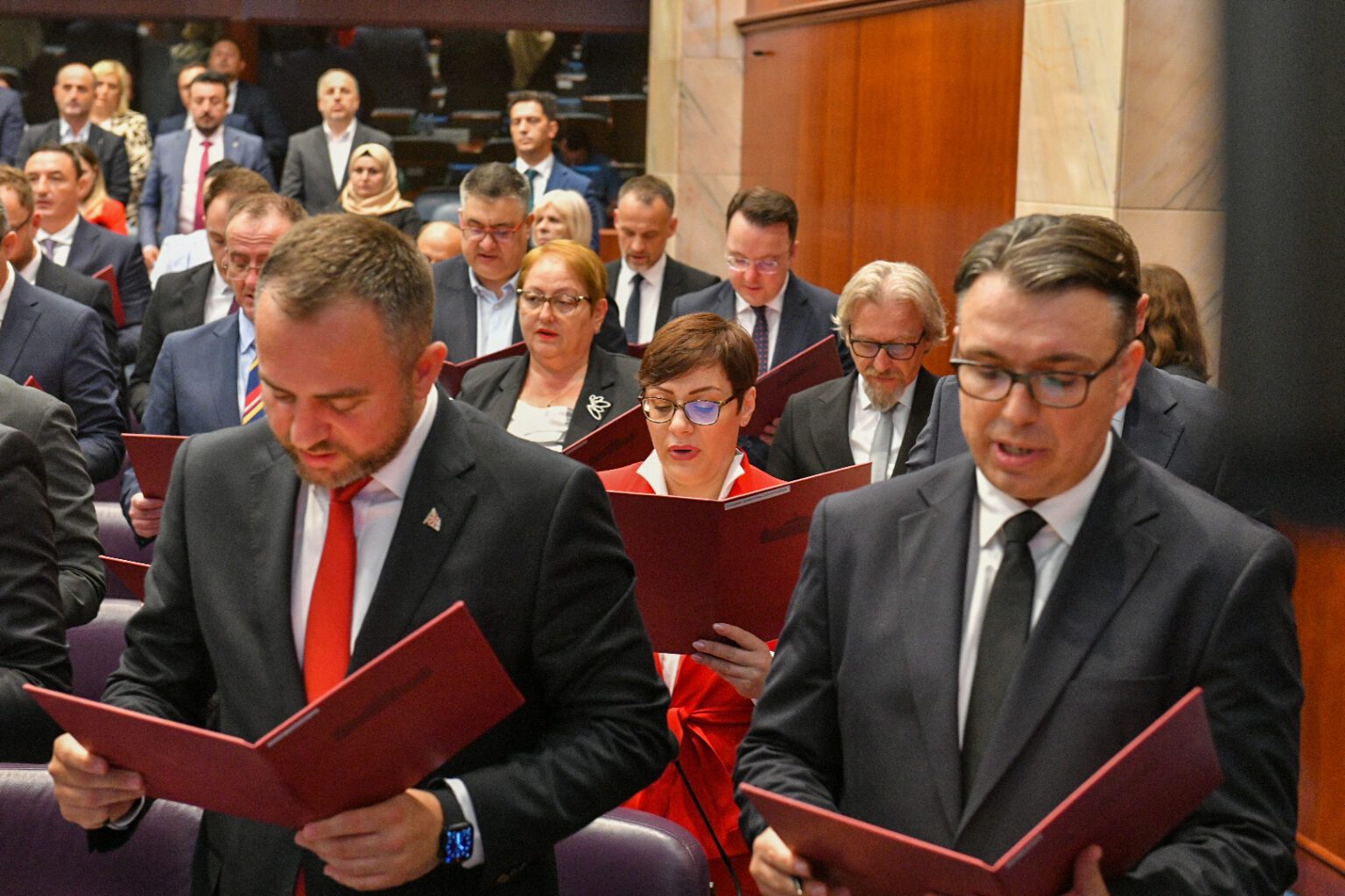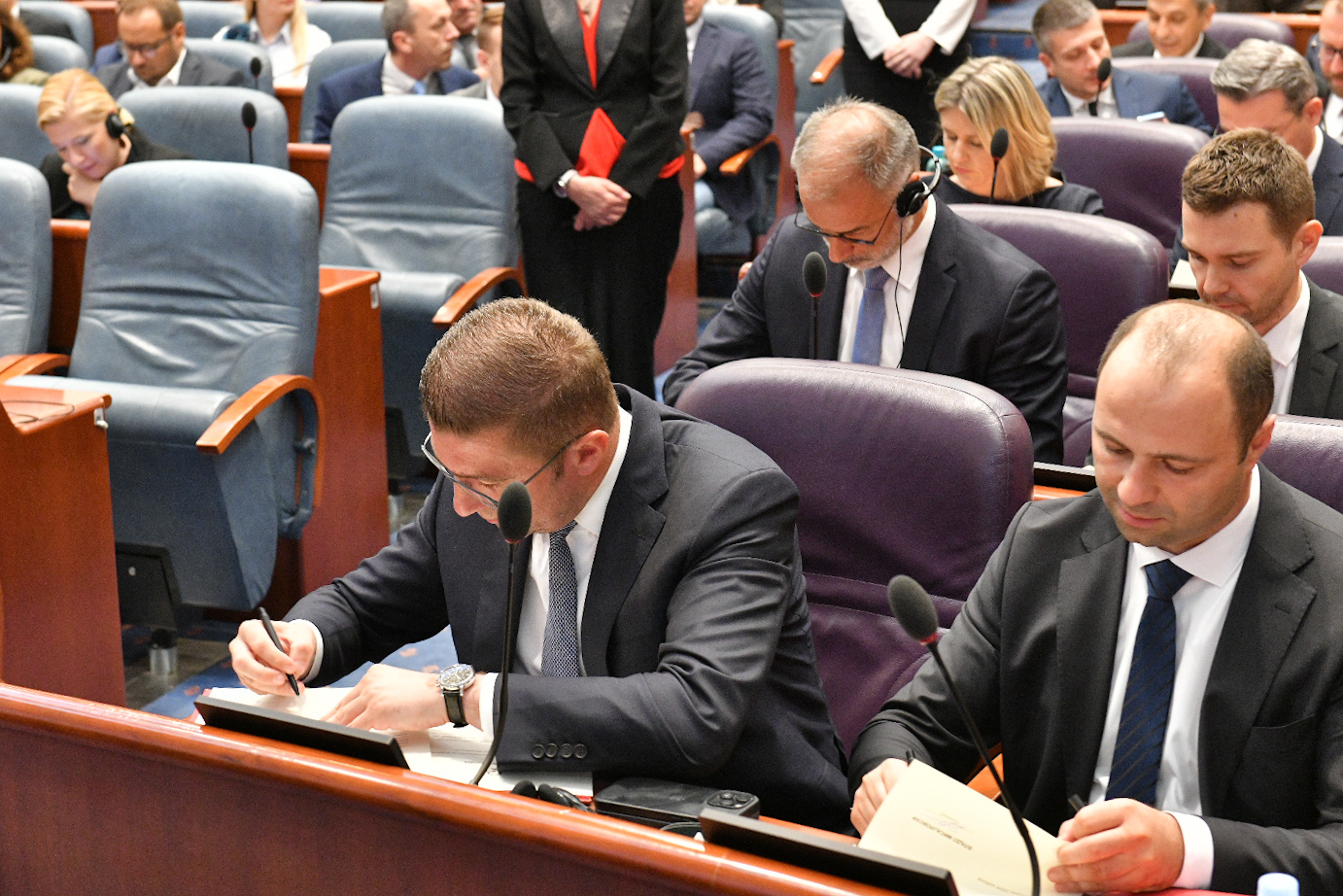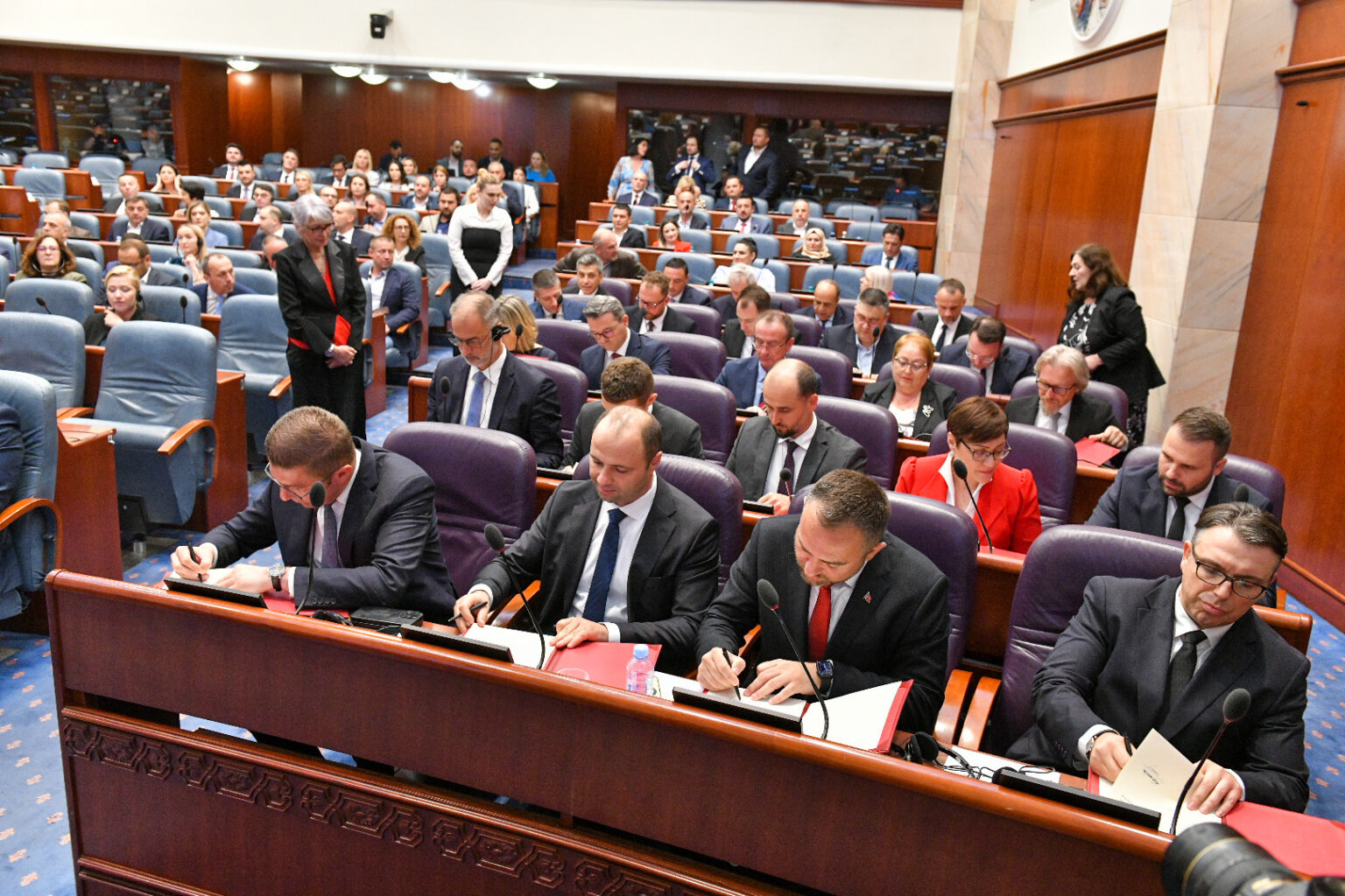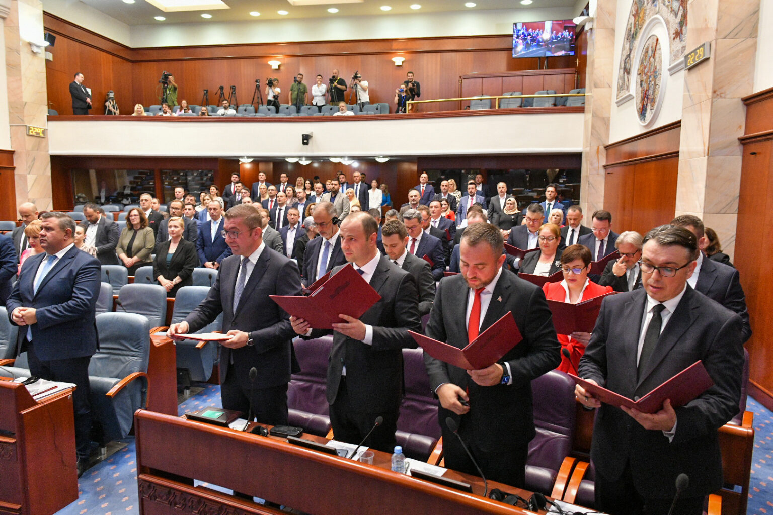 Новиот премиер Христијан Мицкоски и членовите на Владата во Собранието дадоа свечена изјава, по изборот на новиот владин состав што го сочинуваат ВМРО-ДПМНЕ, партиите од коалицијата Вреди и ЗНАМ.
