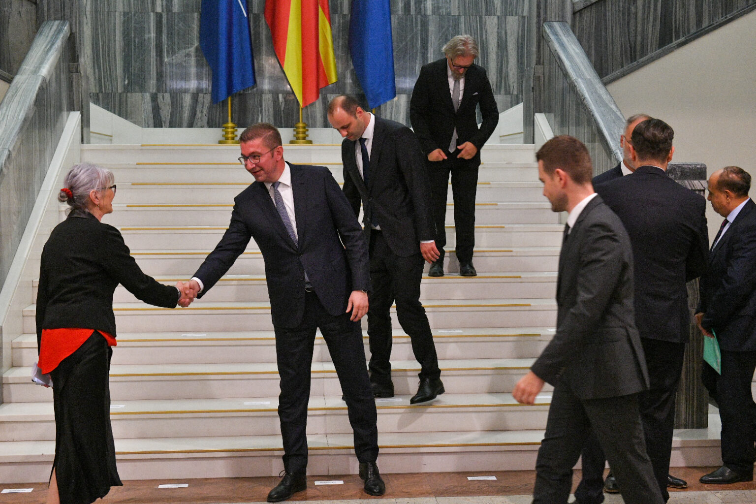 – Ќе ја кажам срамната придавка пред заклетвата затоа што тоа мене лично ме потсетува на срамот што и го нанесовте на мојата татковина, на моето семејство и моите неродени внуци и на тие по нив. И да, ќе правам сѐ, додека сум жив политички и како човек, сѐ што е во моја моќ оваа неправда да ја исправам. За жал во овој момент сум немоќен и во овој момент и јас како човек ќе морам да капитулирам пред вас и да ја кажам таа срамна придавка, затоа што таа, за жал, е дел од законот и Уставот што морам како претседател на владата да ги почитувам – рече Мицкоски.