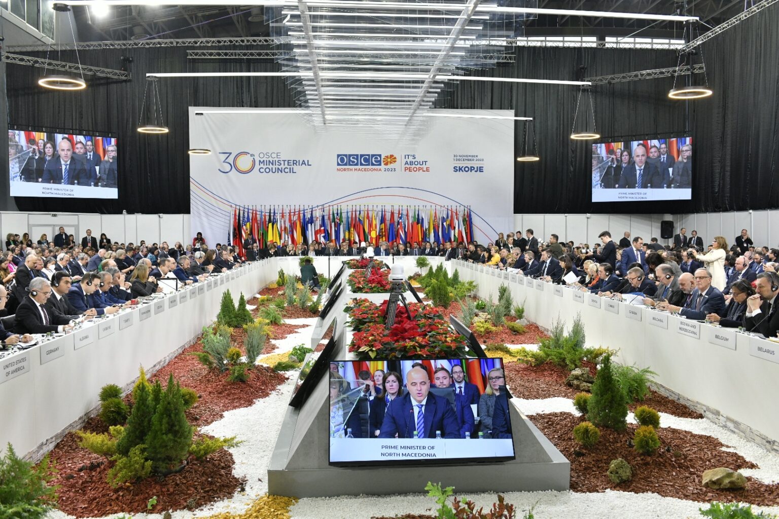 На најголемиот меѓународно-политички настан организиран во земјава од независноста присуствуваат шефовите на дипломатиите на најголем број од земјите-учеснички на ОБСЕ, меѓу кои првите дипломати на САД и на Русија, Ентони Блинкен и Сергеј Лавров, на Канада, Велика Британија, министри од земјите-членки на ЕУ и на НАТО, од Медитеранот, Блискиот Исток и Централна Азија. Блинкен замина од Скопје пред пристигнувањето на Лавров. Државниот секретар на САД синоќа отпатува за Израел.