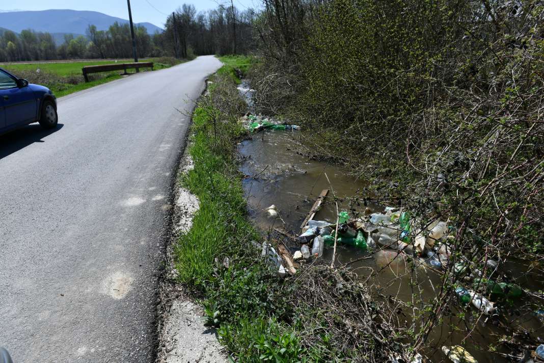 Навистина тешко беше да не се забележи еден од надојдените одводни канали кај Прељубиште, каде што насобраните пластични шишиња, на повеќе места, формираа еден вид брани, поради кои нивото на водите беше речиси израмнето со нивото на новоасфалтираниот пат.