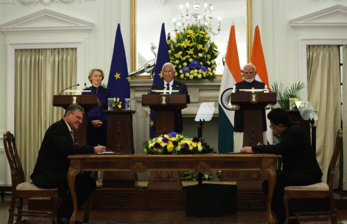 Договорот за слободна трговија меѓу Европската Унија и Индија претставува кулминација на години преговори, но и момент во кој славеничките тонови на политичките говори се судираат со опасноста од потенцијалните последици.