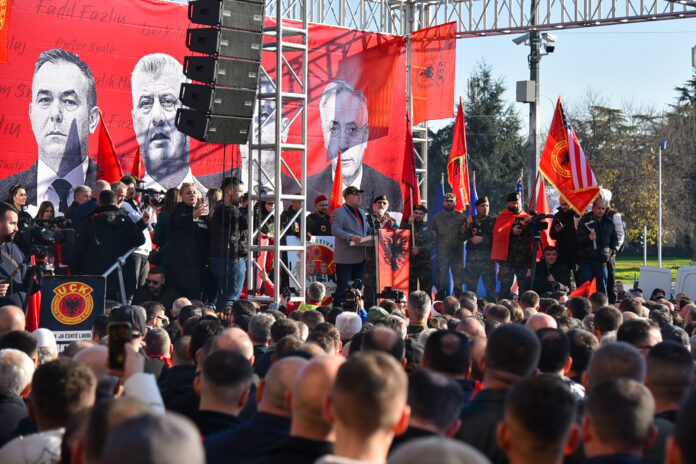 На протестот во Скопје за поддршка на командантите на УЧК од Косово обвинети за воени злосторства во Хаг: