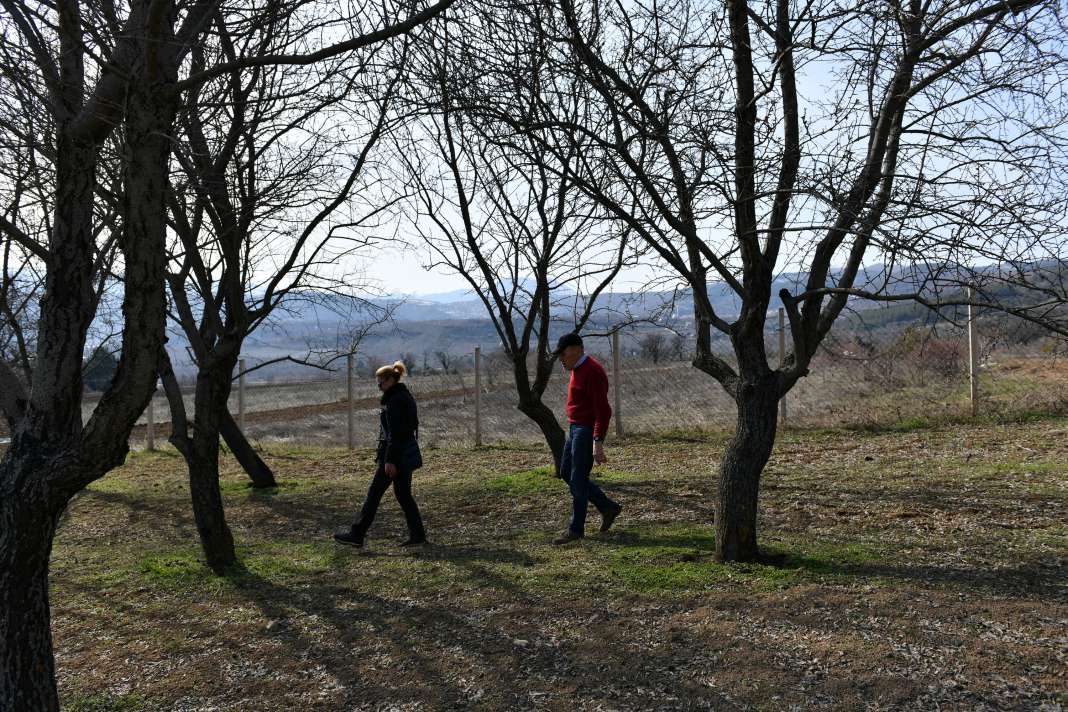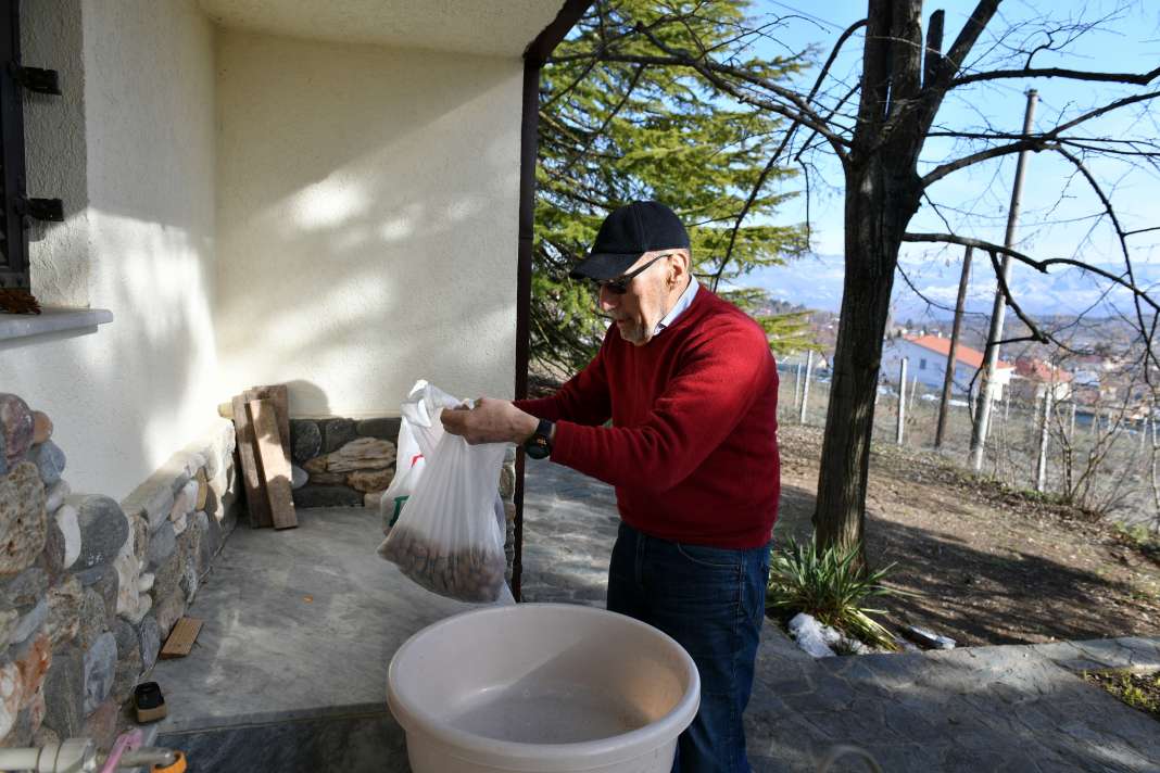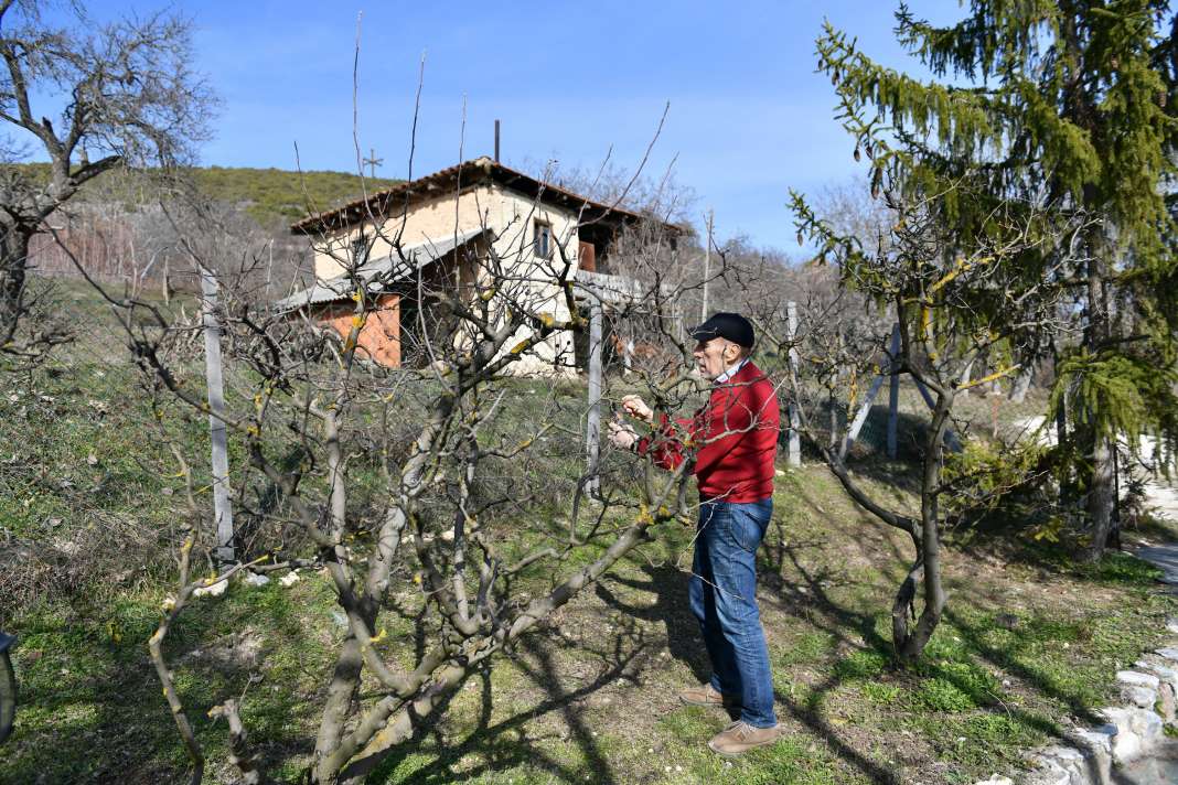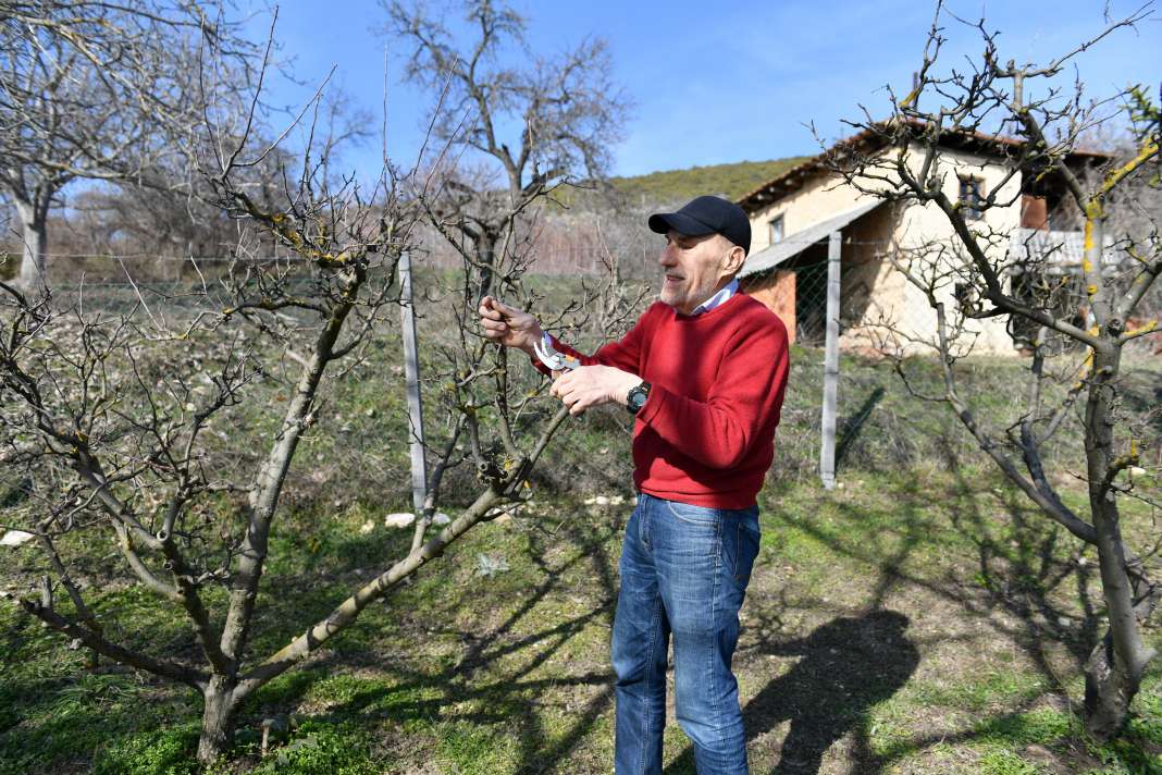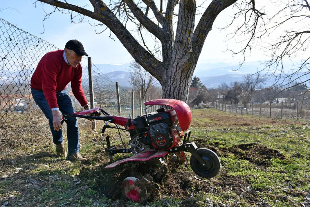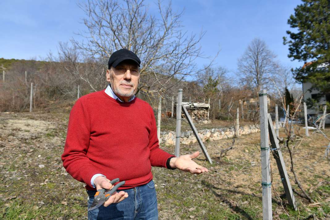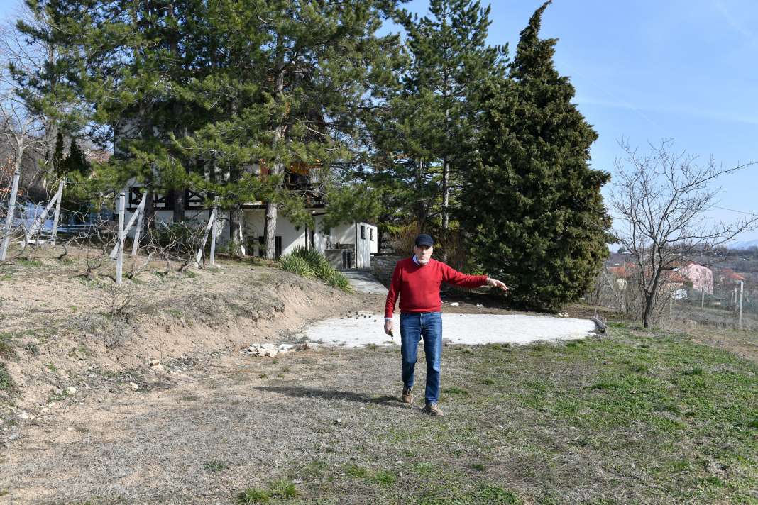 И му веруваме дека го вложил сиот труд зашто, невообичаено за тамошната со камен густо насеана почва, на неговата парцела стапалата постојано ни пропаѓаа во земјата додека им се восхитуваме на добро одгледаните овошки. Редовно ја орал земјата околу овошките со мотокултиватор, со кој посебно се гордее, како и со сите други земјоделски алатки што како драгоцена колекција ги чува во подрумските простории.