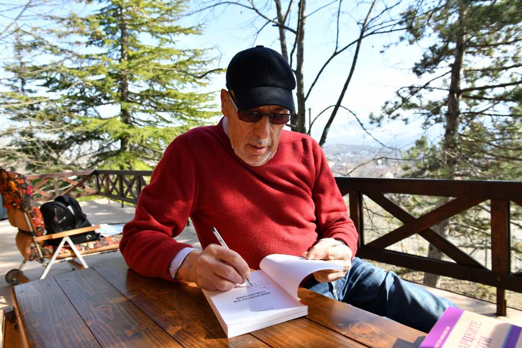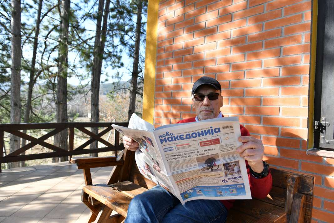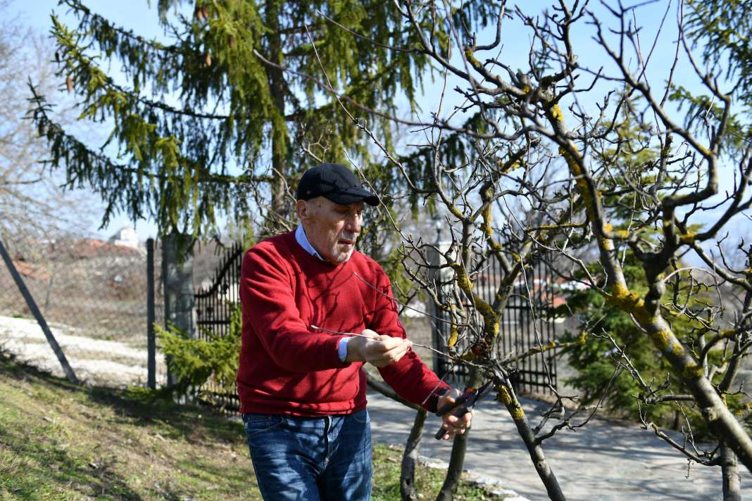 Човекот, за кој многумина би можеле да кажат оти не се занимава со ништо друго, освен со жестоките настапи во одбраната на македонските национални интереси со своето речиси секојдневно присуство во медиумите, сосема смирено, крајно фокусирано и со очигледното задоволство, ги подрежуваше овошките уредно построени како војска во исчекување смотра. Исто како што со зборовите се бори за Македонија, така и со градинарски ножици се бори за полесно и поквалитетно преживување на своето семејство во овие тешки времиња, кои, како што и самиот вели, не навестуваат нималку лесна иднина.