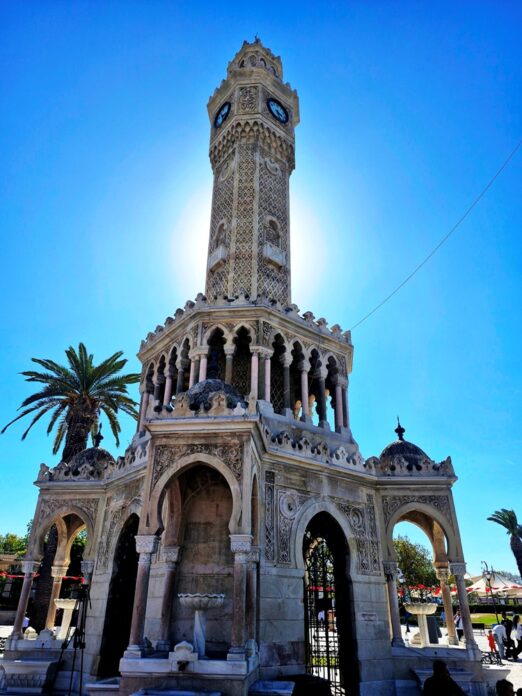 Следната дестинација за прошетка е модерниот и шарен град Измир, со речиси четири и пол милиони жители. Измир е трет по големина град во Турција со 35 окрузи. Метропола, значаен трговски центар, кој и да сакаш во еден ден не можеш да го прошеташ. Најпрво се упативме кон улицата Дарио Морено, именувана по големиот популарен гитарист. На почетокот те пречекува обележјето со гитара на кое е отсликан Морено, а внатре улицата е живописна, автентична со многу цвеќиња. Почувствував убава и пријатна атмосфера. Потоа се искачивме со лифтот Асансор од 19 век, на ридот. Оттаму го имавме најубавиот поглед на Измир, распослан покрај брегот на Егејско Море. Погледот е величествен. Измир се капе во сонцето, покрај морето, а вие се фотографирате од речиси сите страни. Прошетката ја продолживме на плоштадот „Конак“, збирното место на сите измирци, во чиј центар доминира симболот на градот, Саат-кулата од 19 век со четири фонтани. Од спротивната страна се џамијата и Гувернеровата палата, малку подалеку музејот. Изборот е ваш што ќе сакате да разгледате. Можеби само ќе се упатите кон базарот „Кемарилити“ и да поминете едно цело попладне, како мене, шетајќи низ тесните улички, низ продавниците, пазарот. Така можеби ќе го доживеете со сите сетила Измир, во кој живеат и голем број Турци што потекнуваат од нашите простори, град со богата турска култура и природна убавина.