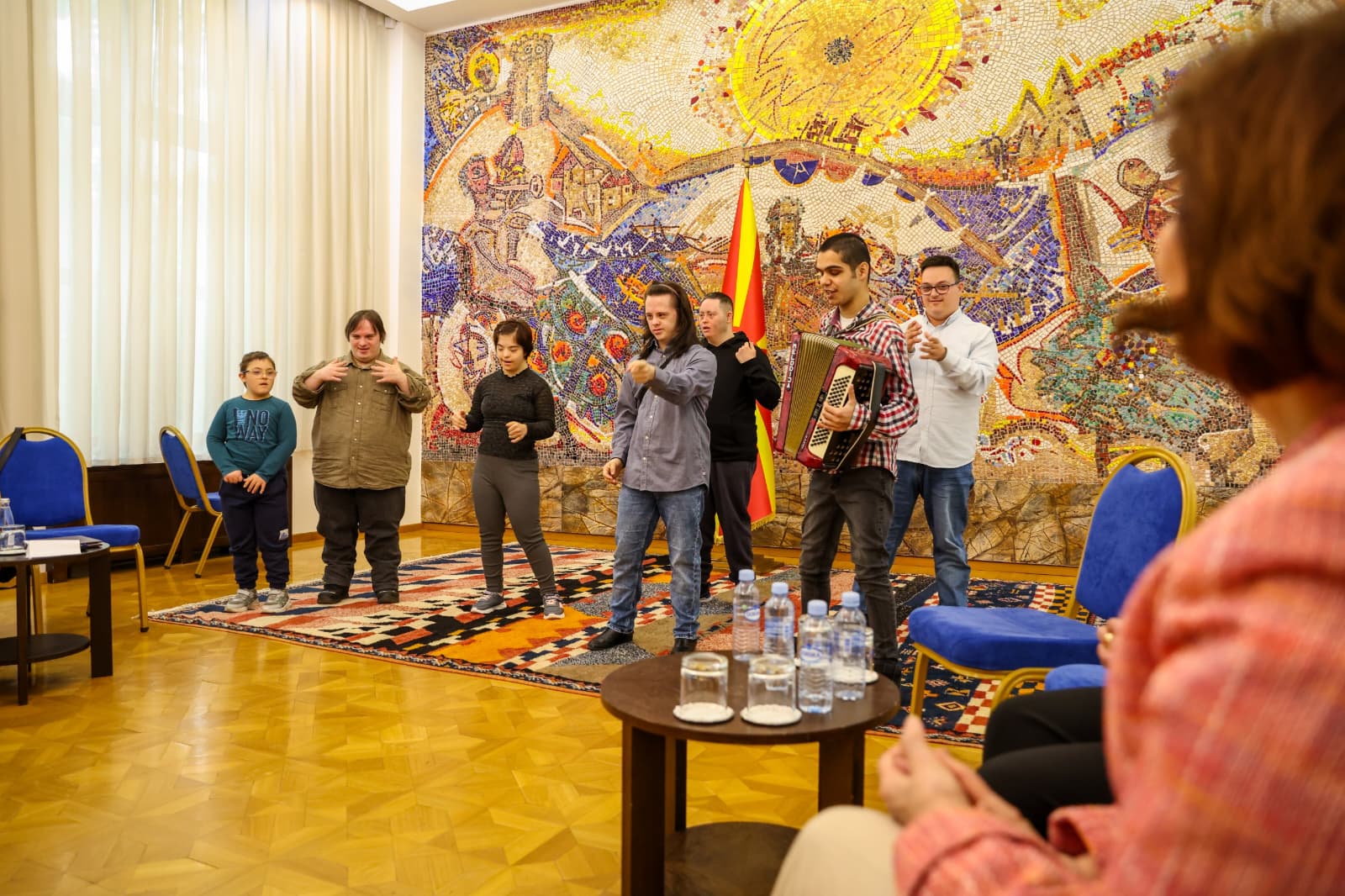 На средбата, таа го поздрави холистичкиот пристап на здружението, кој придонесува за унапредување на животот на децата, младите и возрасните лица со Даунов синдром.