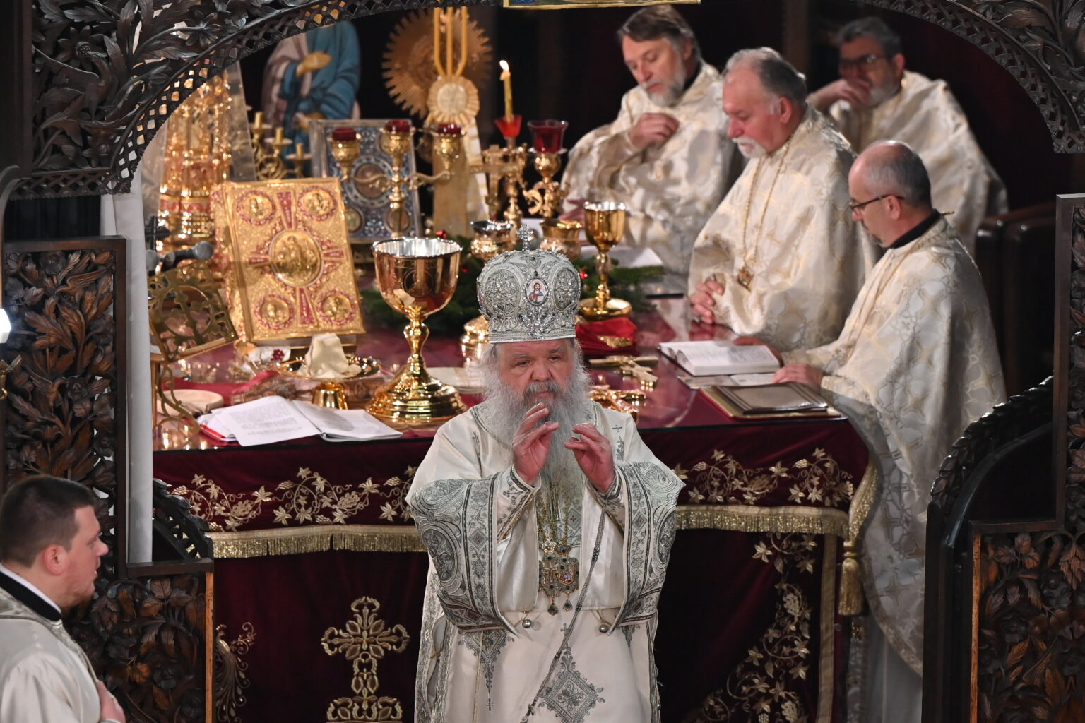 Архиепископот охридски и македонски г.г. Стефан одржа архиерејска литургија на Свети Василиј Велики во соборниот храм „Свети Климент Охридски“ во Скопје, каде што денеска се одржа централно одбележување на Рождеството Христово – Божиќ.