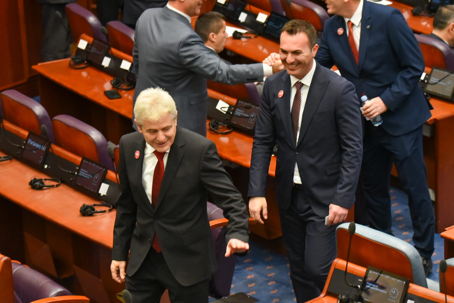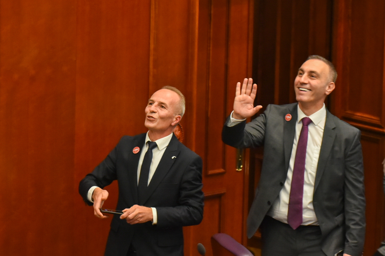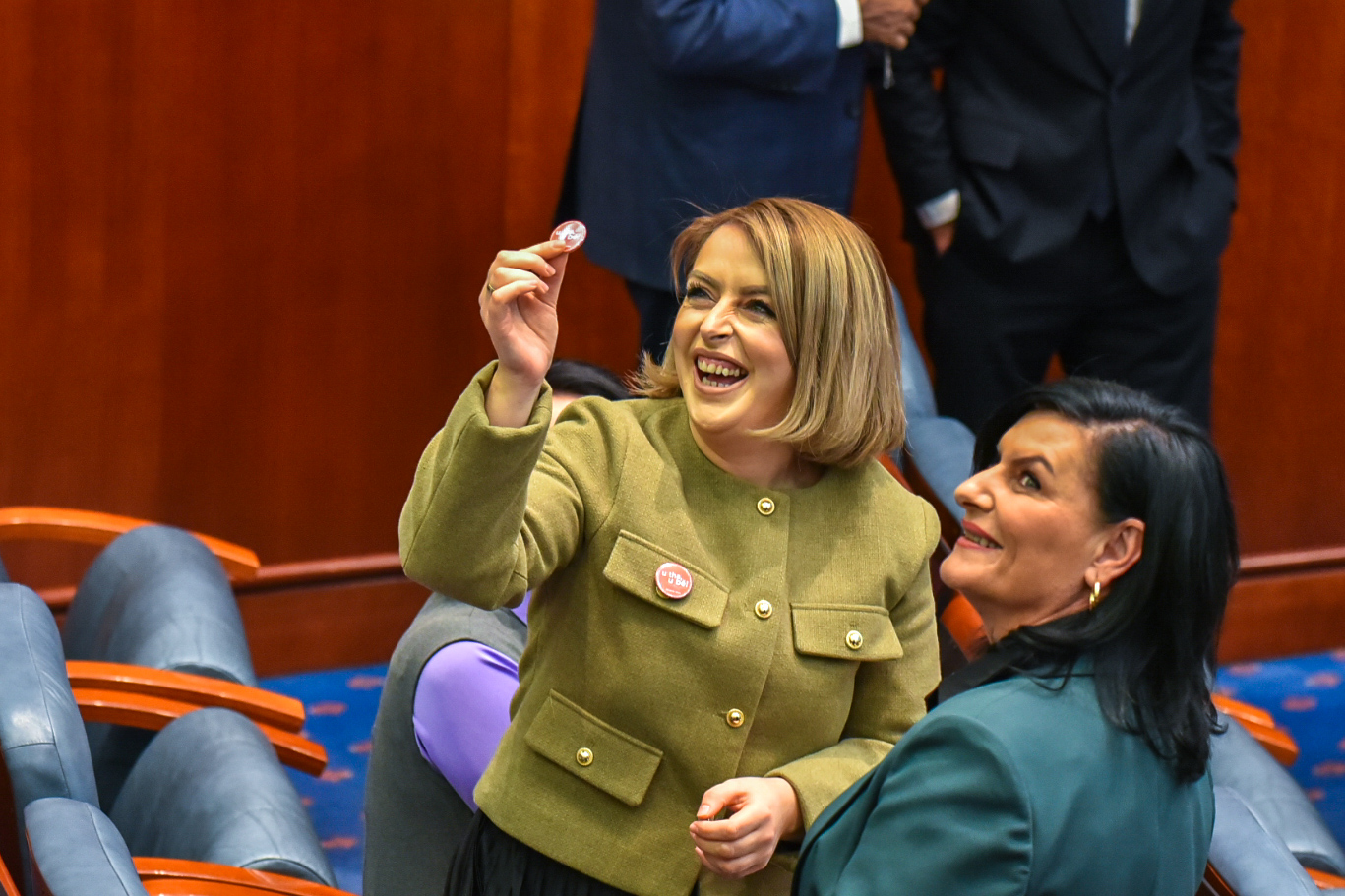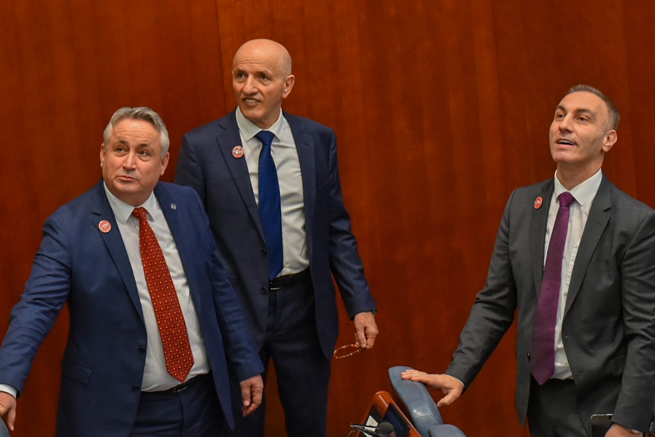 Пратениците на ДУИ се појавија во Собранието на Македонија, видно расположени и со закачени беџови на кои пишува „Речено – Сторено“.