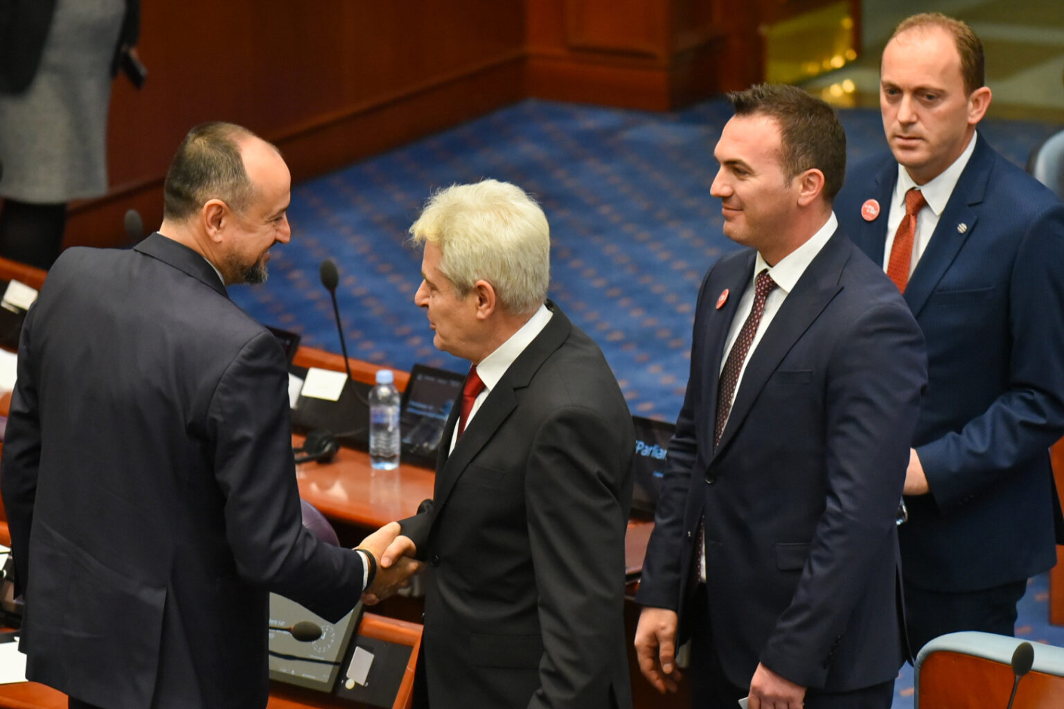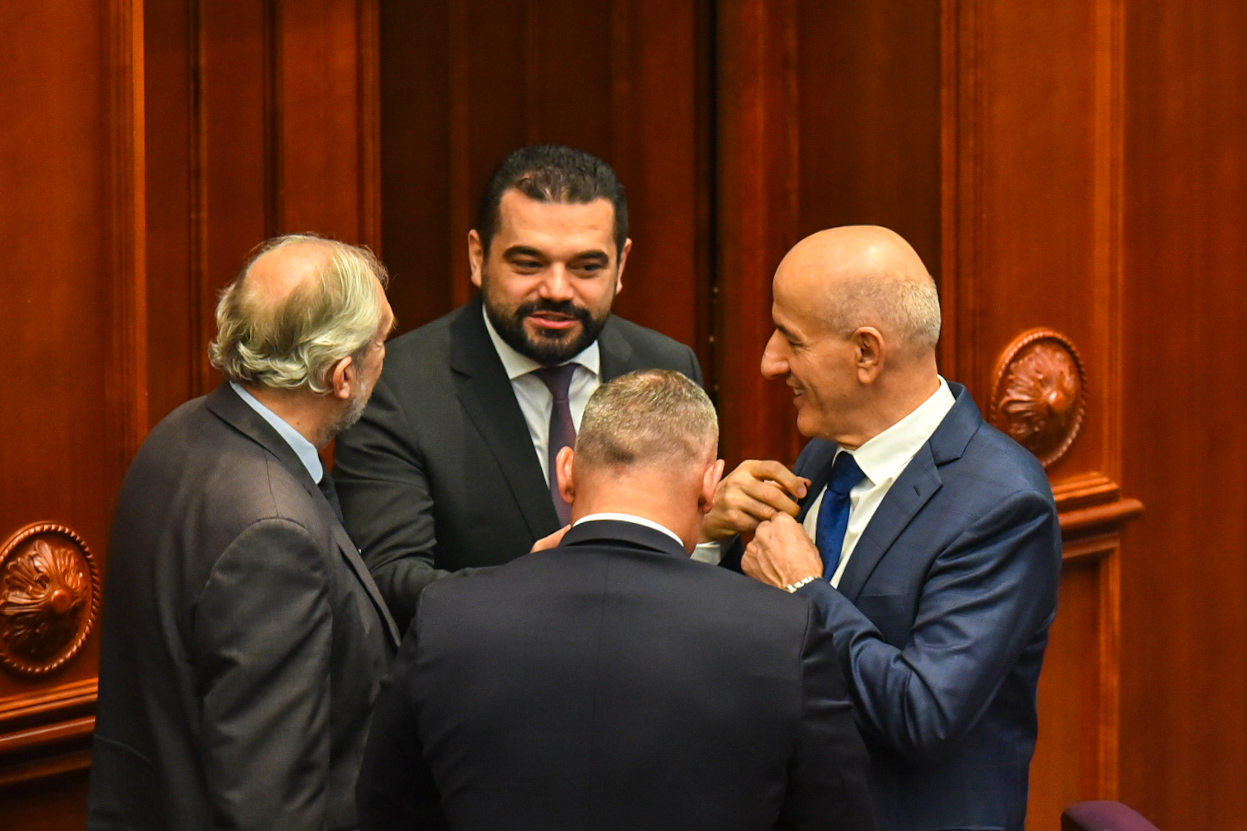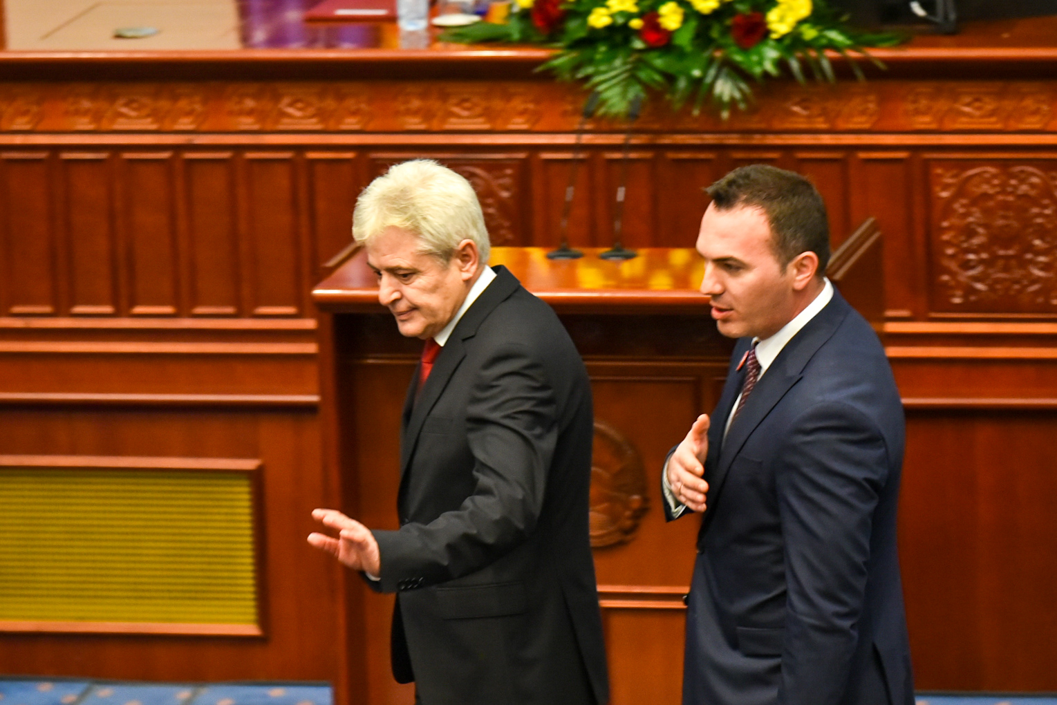 Пратениците на ДУИ се појавија во Собранието на Македонија, видно расположени и со закачени беџови на кои пишува „Речено – Сторено“.
