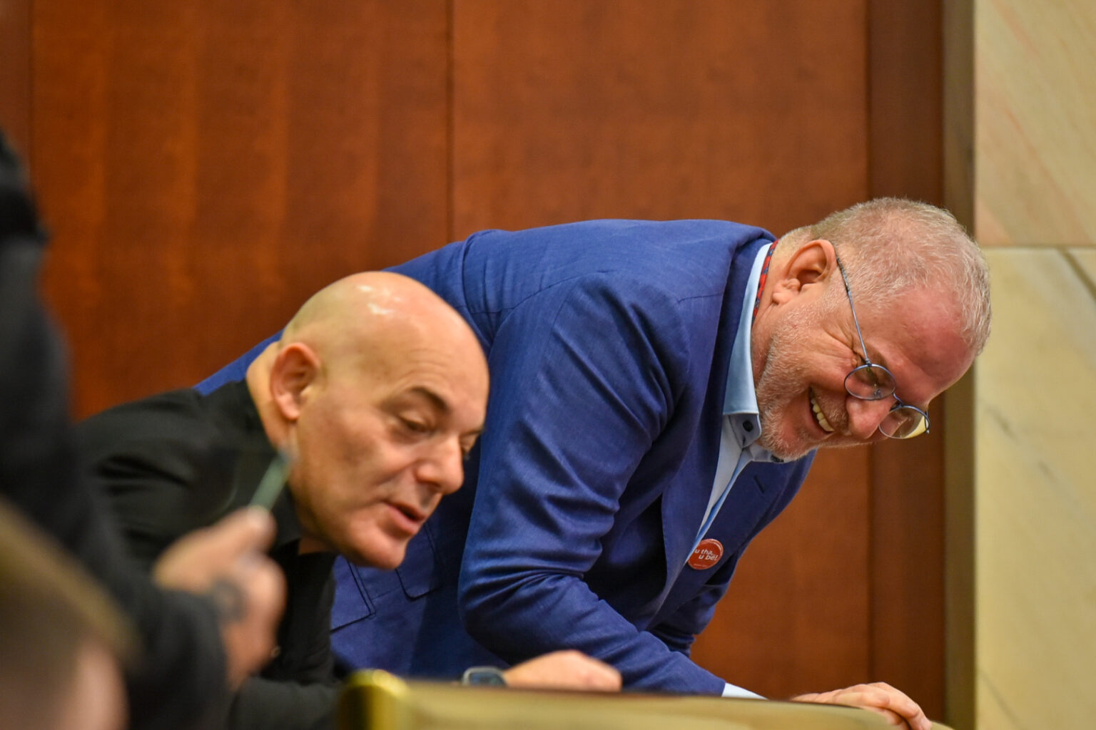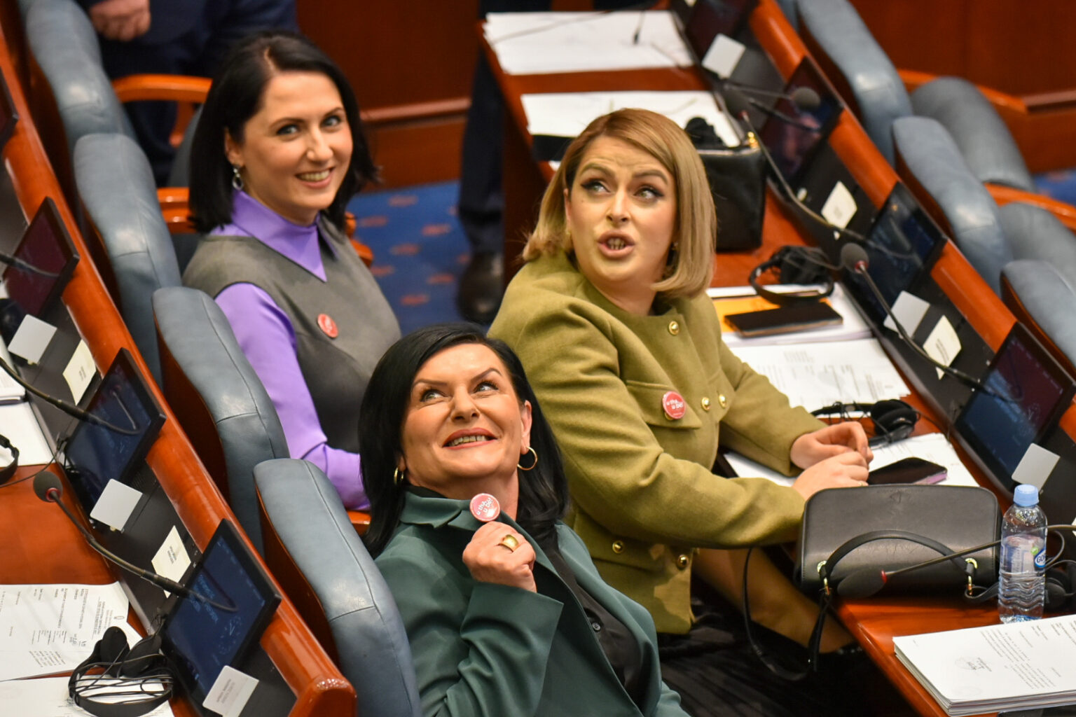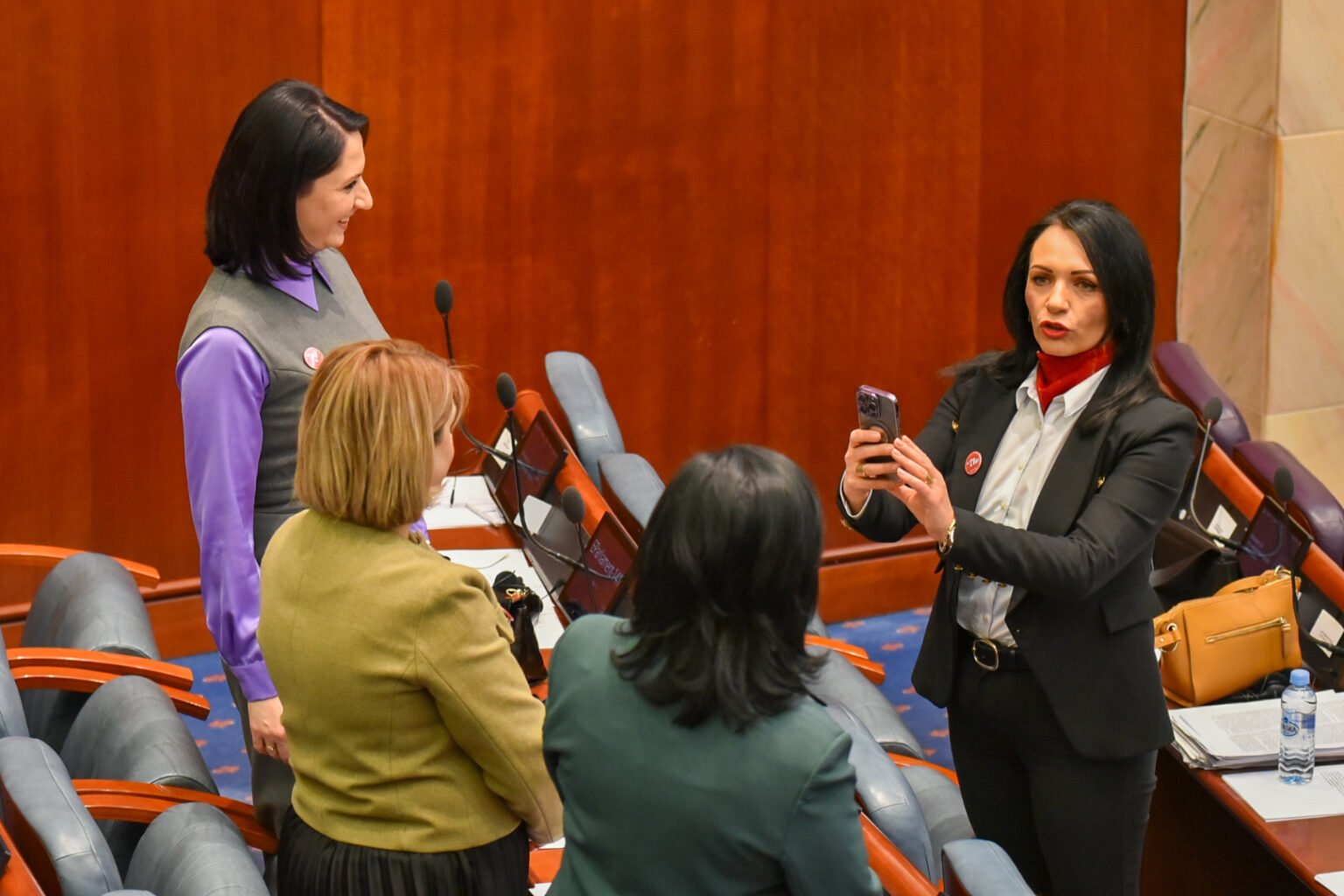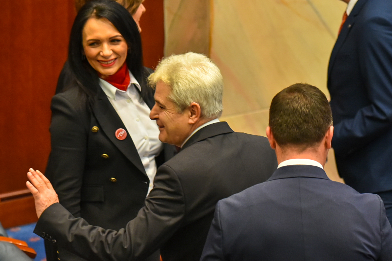 Пратениците на ДУИ се појавија во Собранието на Македонија, видно расположени и со закачени беџови на кои пишува „Речено – Сторено“.