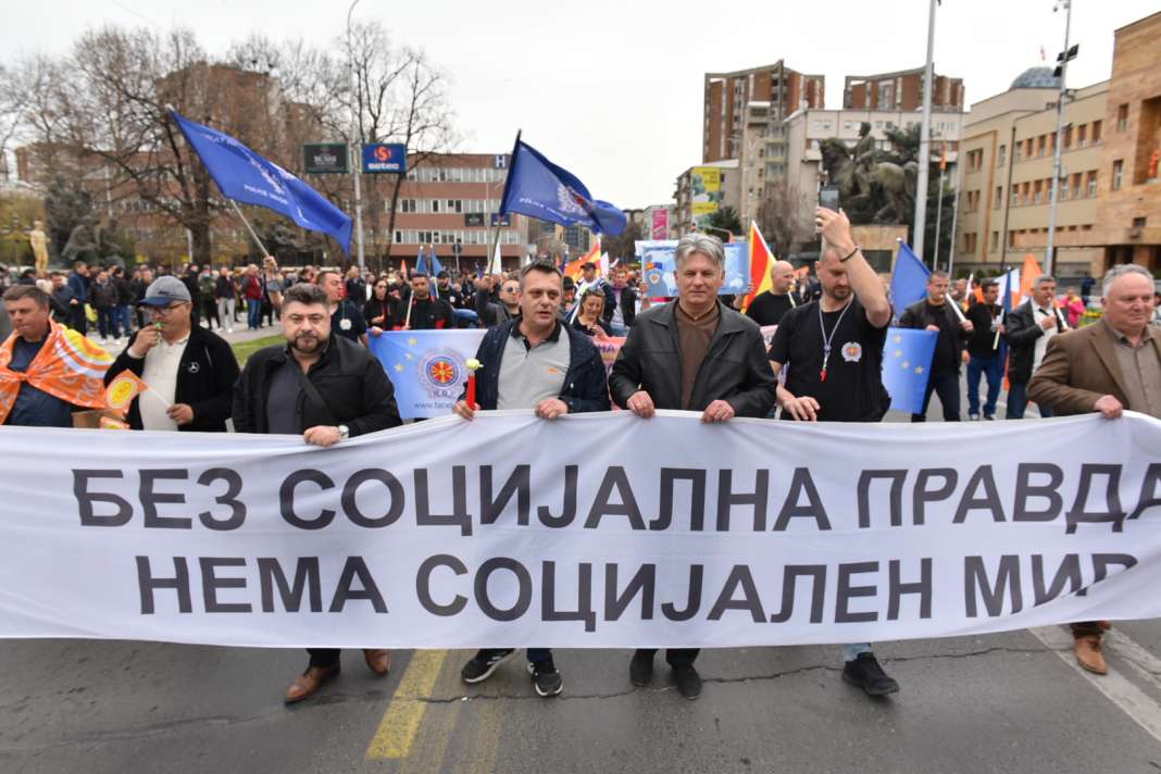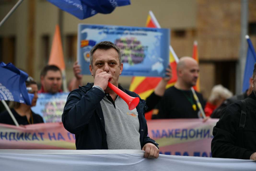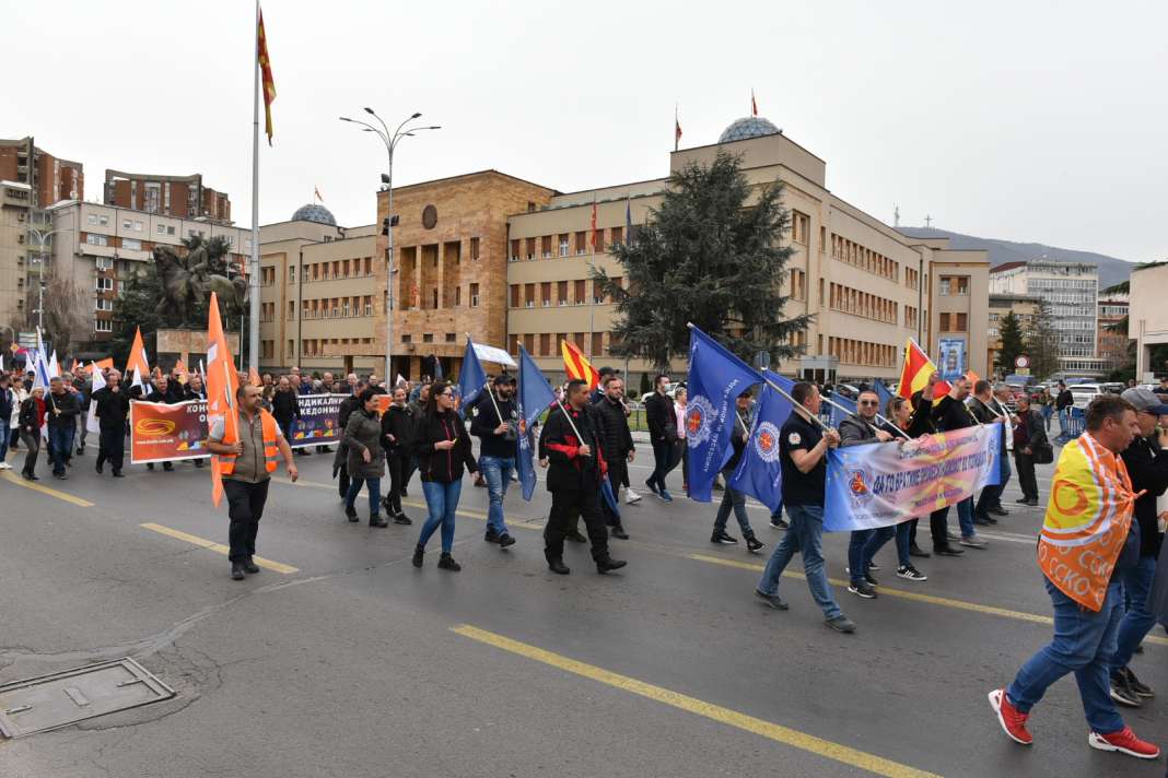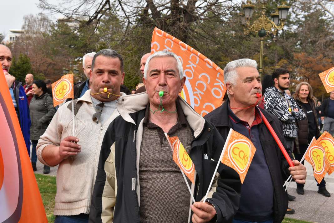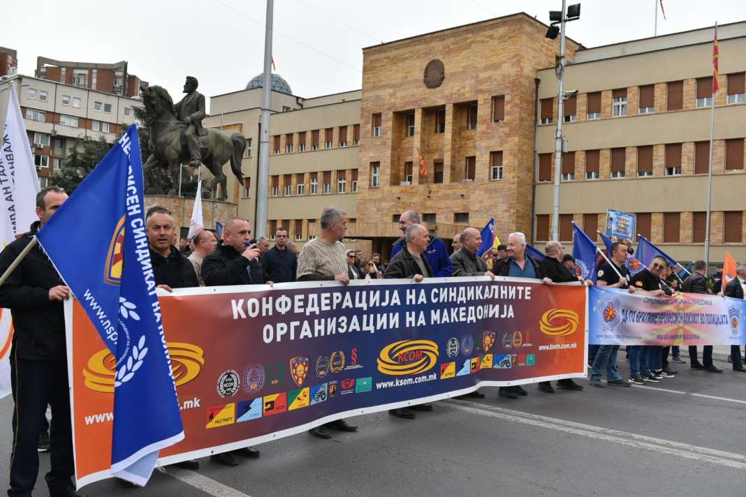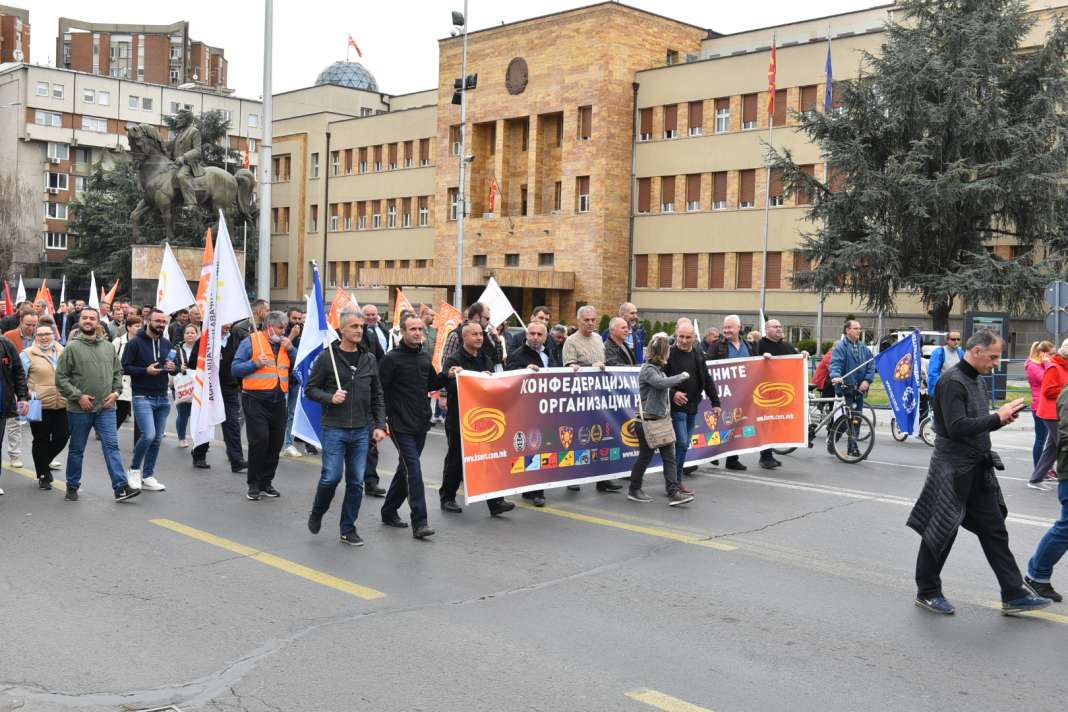 Членови на Конфедерацијата на слободни синдикати (КСС) попладнево излегоа на предупредувачки протест пред Собранието и Владата, при што искажаа незадоволство што досега не се усогласени платите со минималната плата.