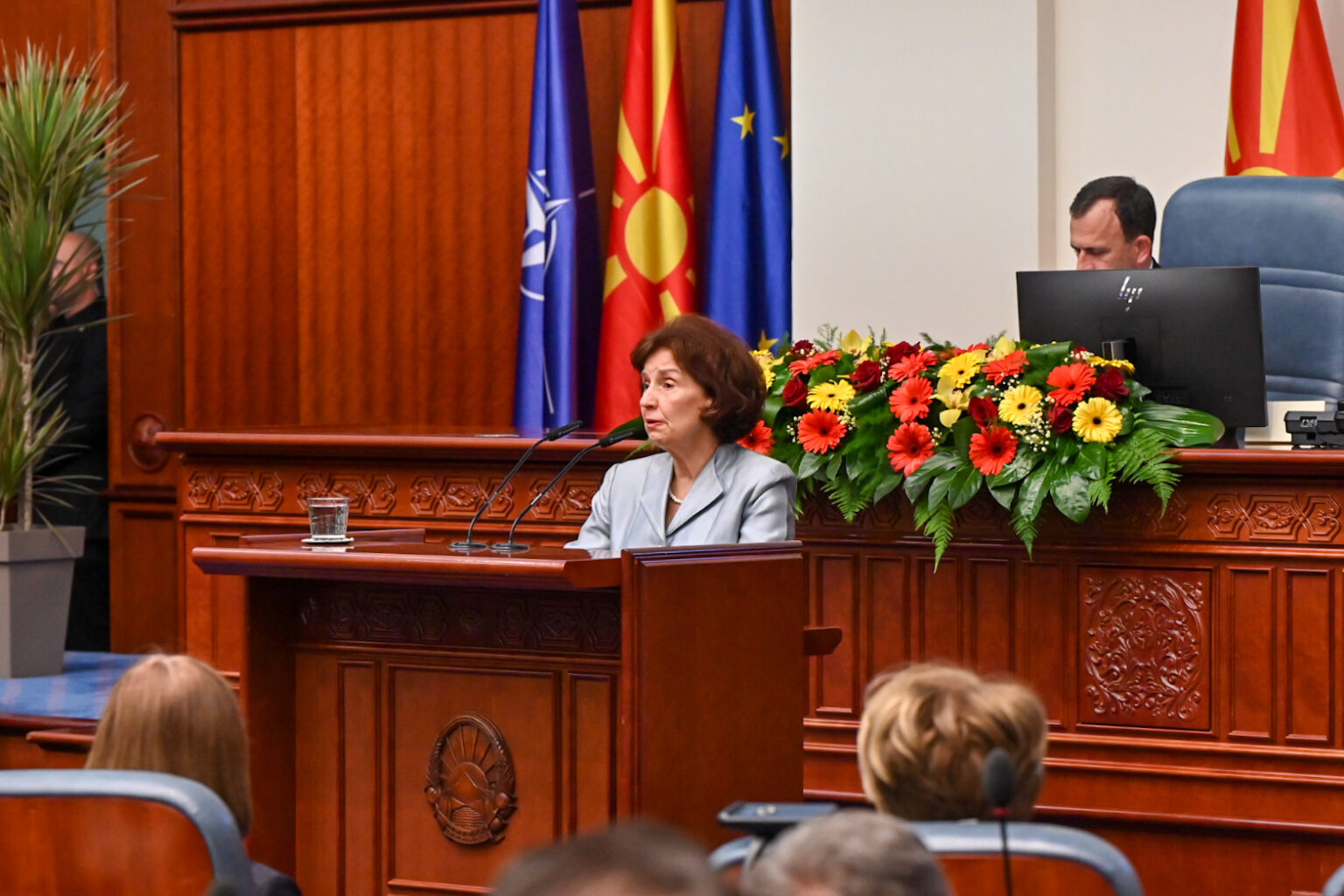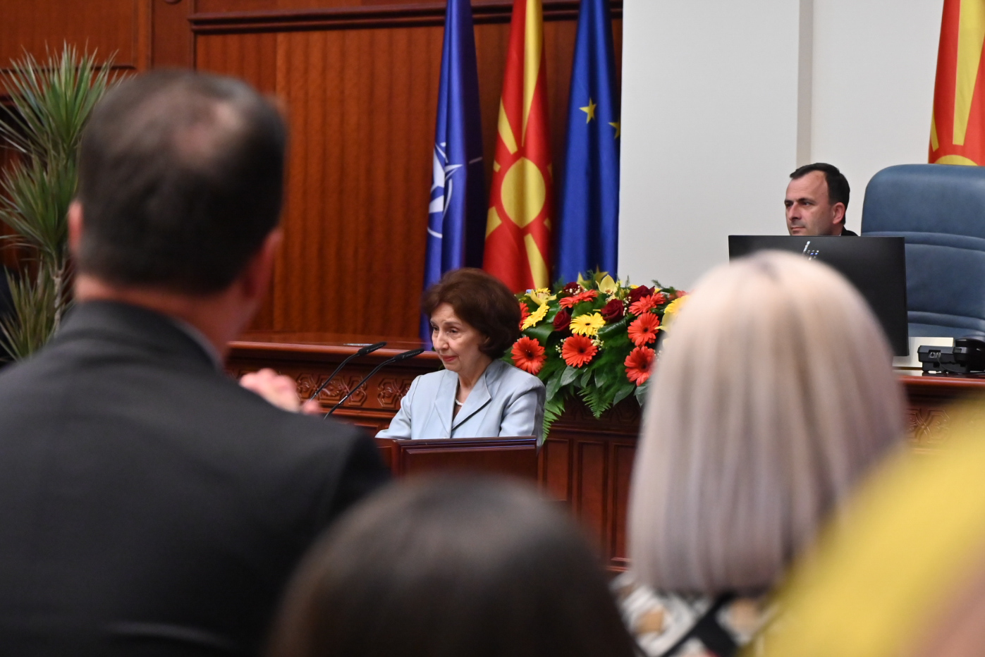 -Ќе го почитувам овој парламент, ќе ги заборавам лошите моменти, ќе ги помнам само добрите, ќе бидам претседателка и на левата и десната страна, на сите граѓани, нема да правам разлика меѓу нив по етничка, верска, полова ни по која било друга основа. Ќе се обидам да ги оправдам овие илјадници гласови кои не се само најубав подарок за мојот роденден, туку и најголема обврска и одговорност, истакна Сиљановска-Давкова на инаугурацијата на 151 седница на Собранието, која ја водеше досегашниот нејзин претседател Јован Митрески.