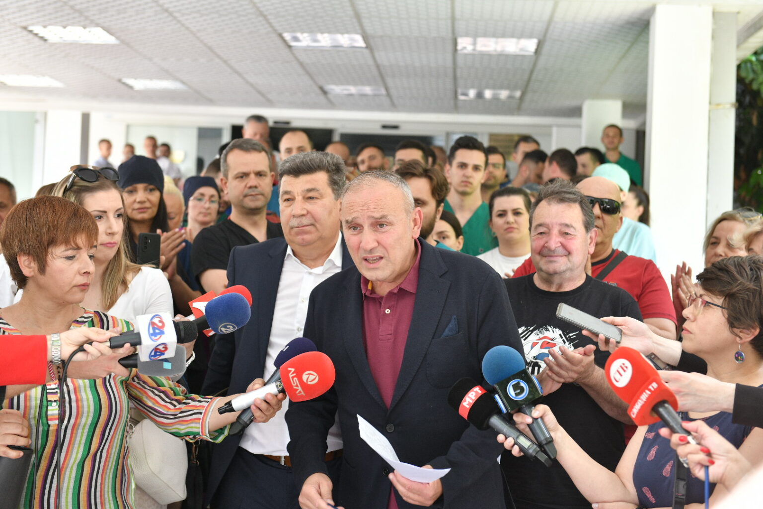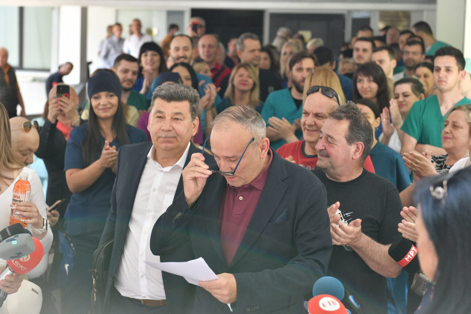Пациенти, но и вработени на Клиниката за кардиохирургија застанаа во одбрана на директорот проф. д-р Сашко Јовев, кој вчера беше разрешен од министерот Фатмир Меџити.