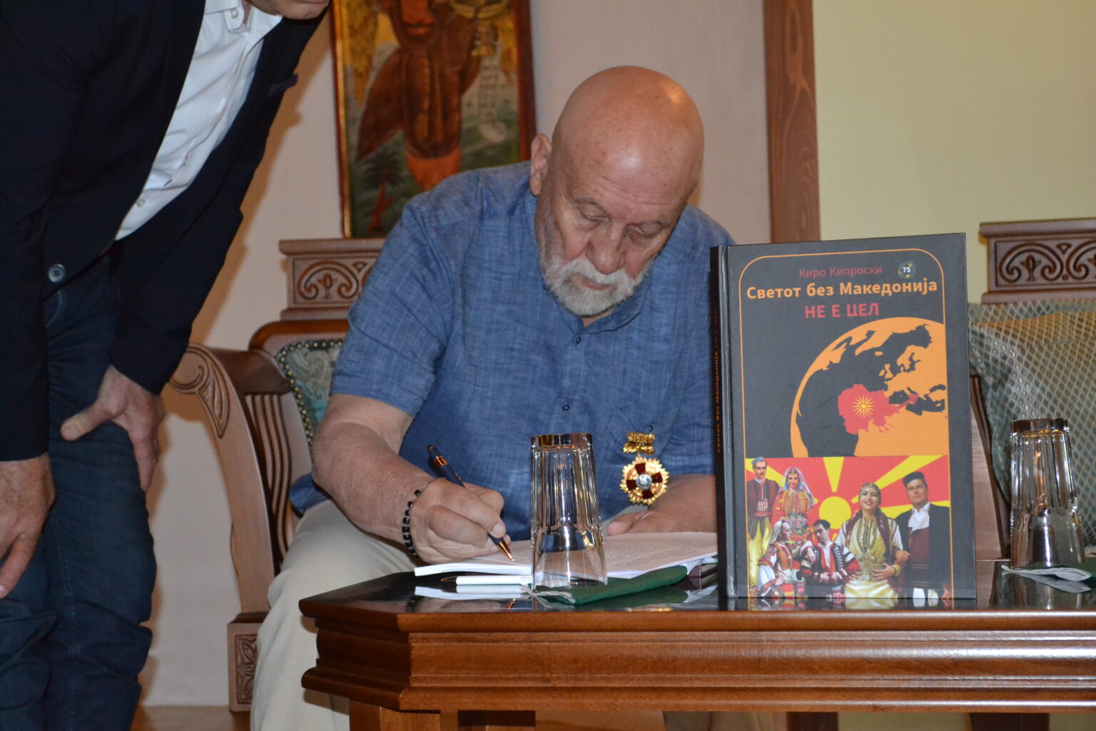 Вчера во Бигорскиот манастир беше промовирана монографијата „Светот без Македонија не е цел“ на Киро Кипроски, доајен на македонското новинарство и публицистика, во организација на издавачот НУ Центар за култура АСНОМ – Гостивар. Пред бројната присутна публика за книжевното дело зборуваа рецензентот Марјан Велевски, в.д.главен и одговорен уредник на дневниот весник „Нова Македонија“, проф. д-р Светлана Велјановска, деканка на Правниот факултет – Кичево, при битолскиот универзитет „Св. Климент Охридски“ и уредникот на монографијата и автор Киро Кипроски. Модератор на промоцијата беше актерот Стојче Нешкоски.
