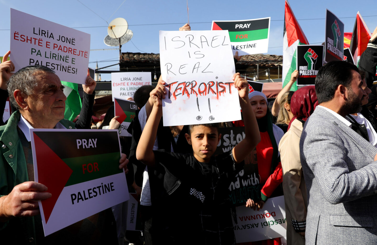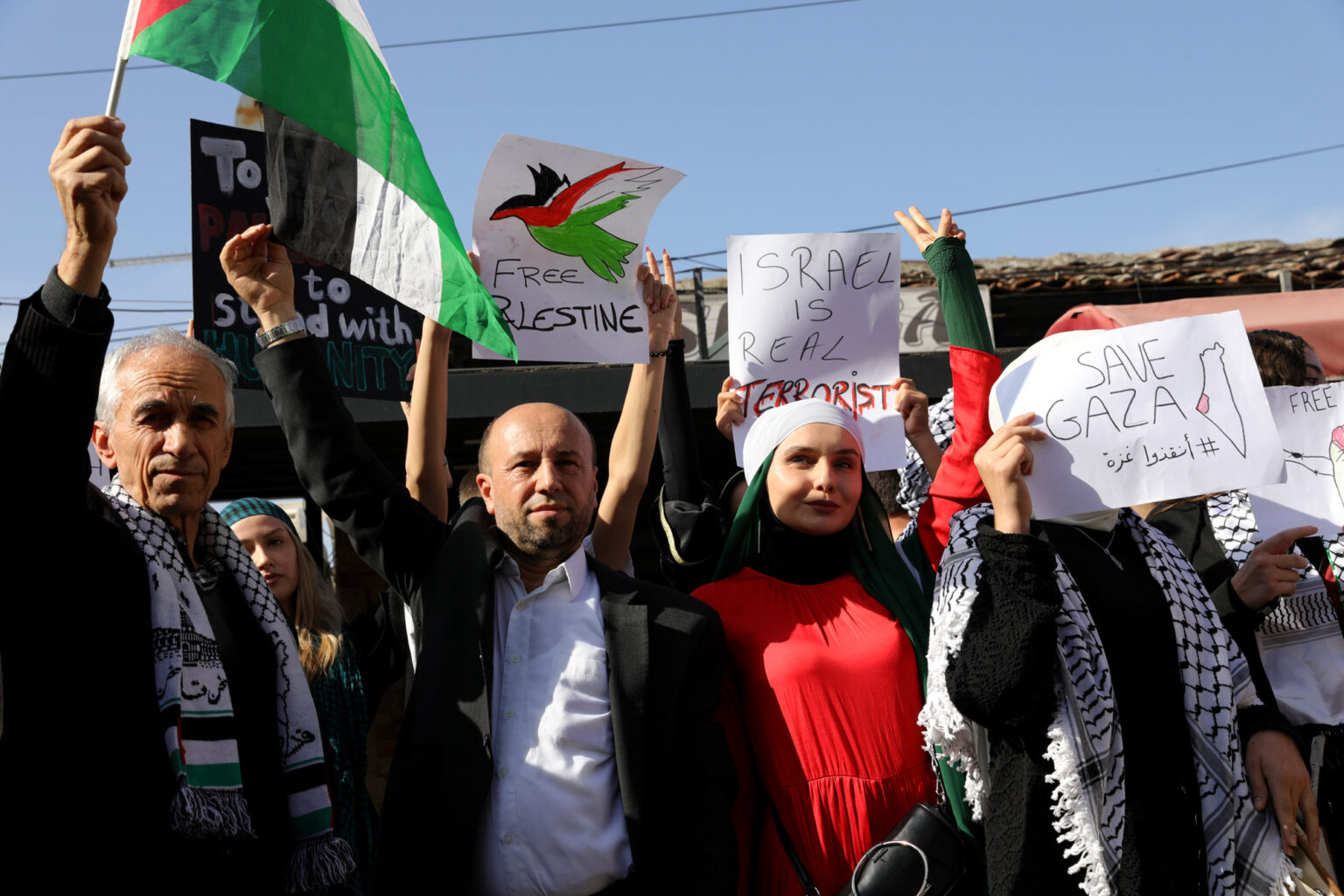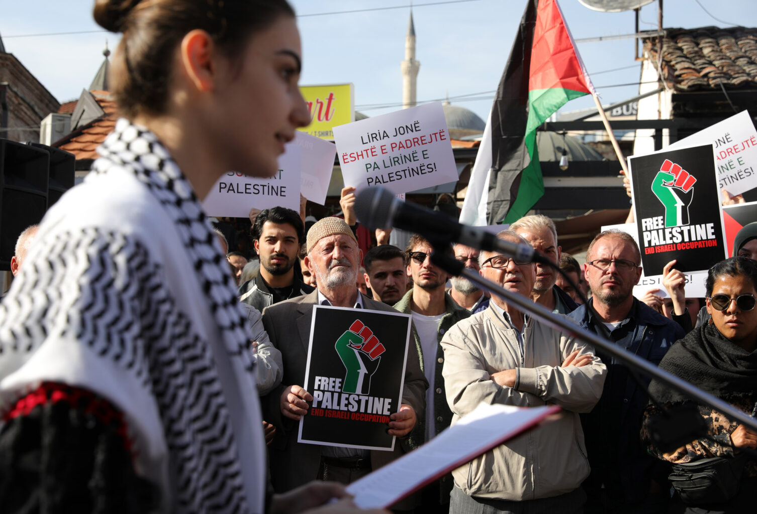 Хусрев на денешниот протест во Скопје побара нападите да престанат нагласувајќи дека „не може да се остане нем за она што се случува“, бидејќи до денес имало над 3.500 жртви.