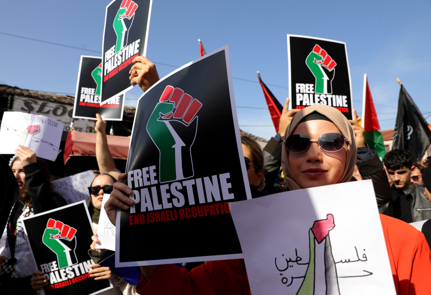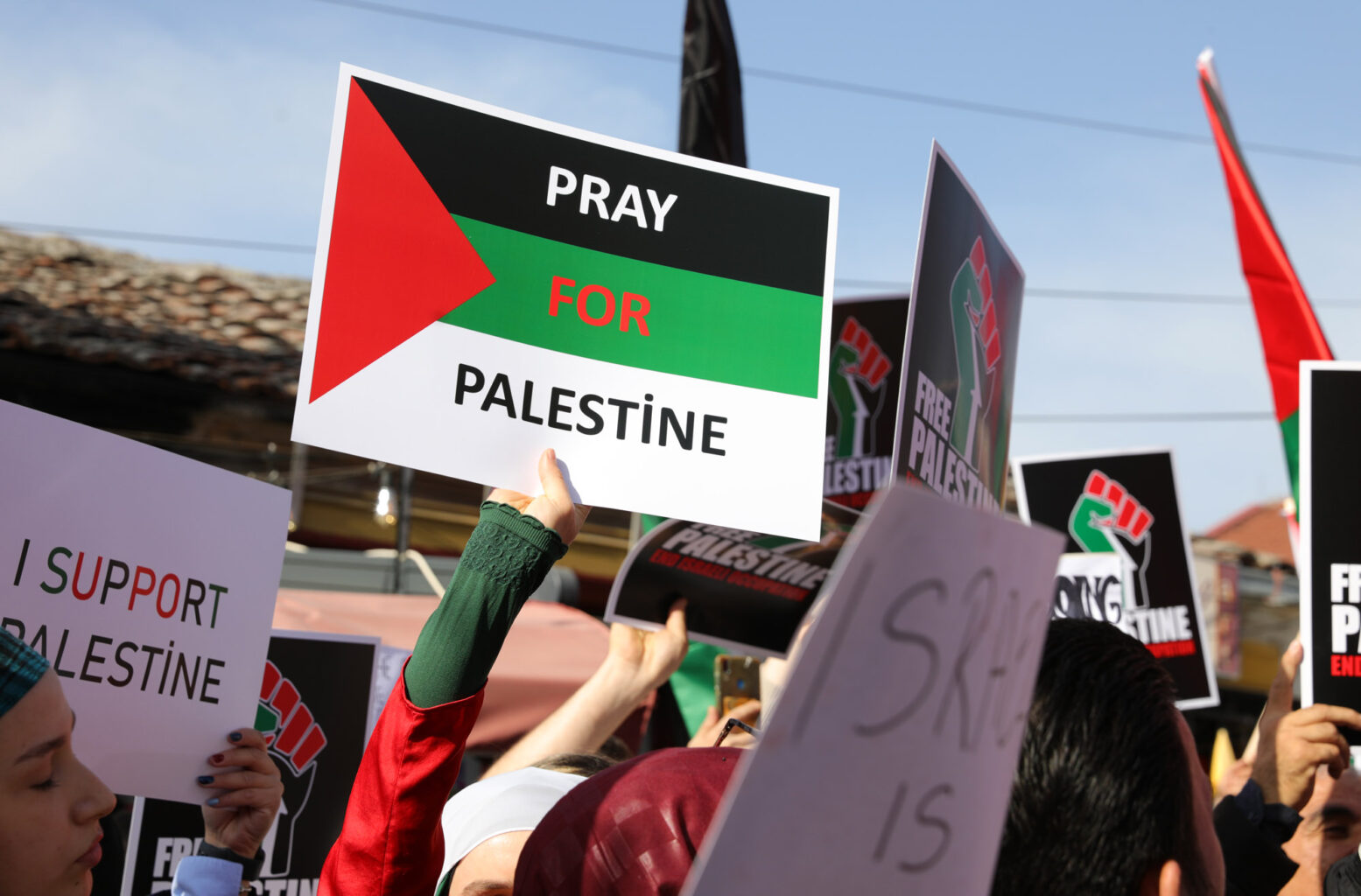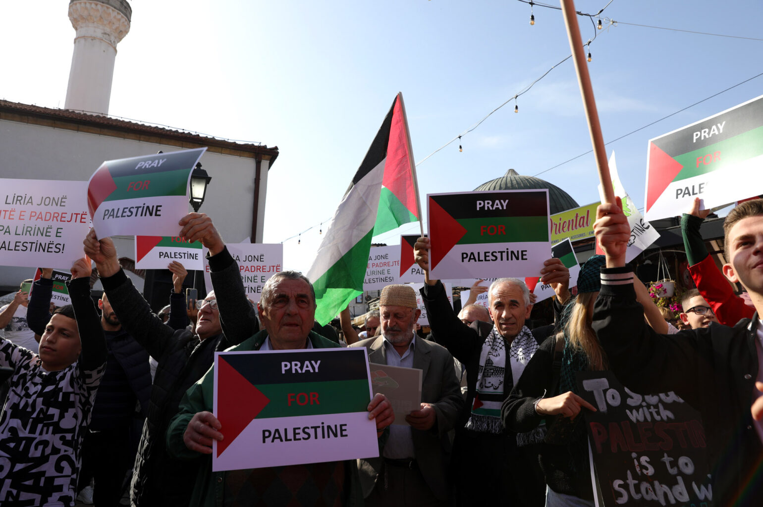 Група граѓани со транспаренти „Слобода за Палестина“ денеска се собраа на протест којшто се одржа пред Мурат Пашината Џамија во Старата скопска чаршија. Тие побараа „да престанат нападите во Палестина“.