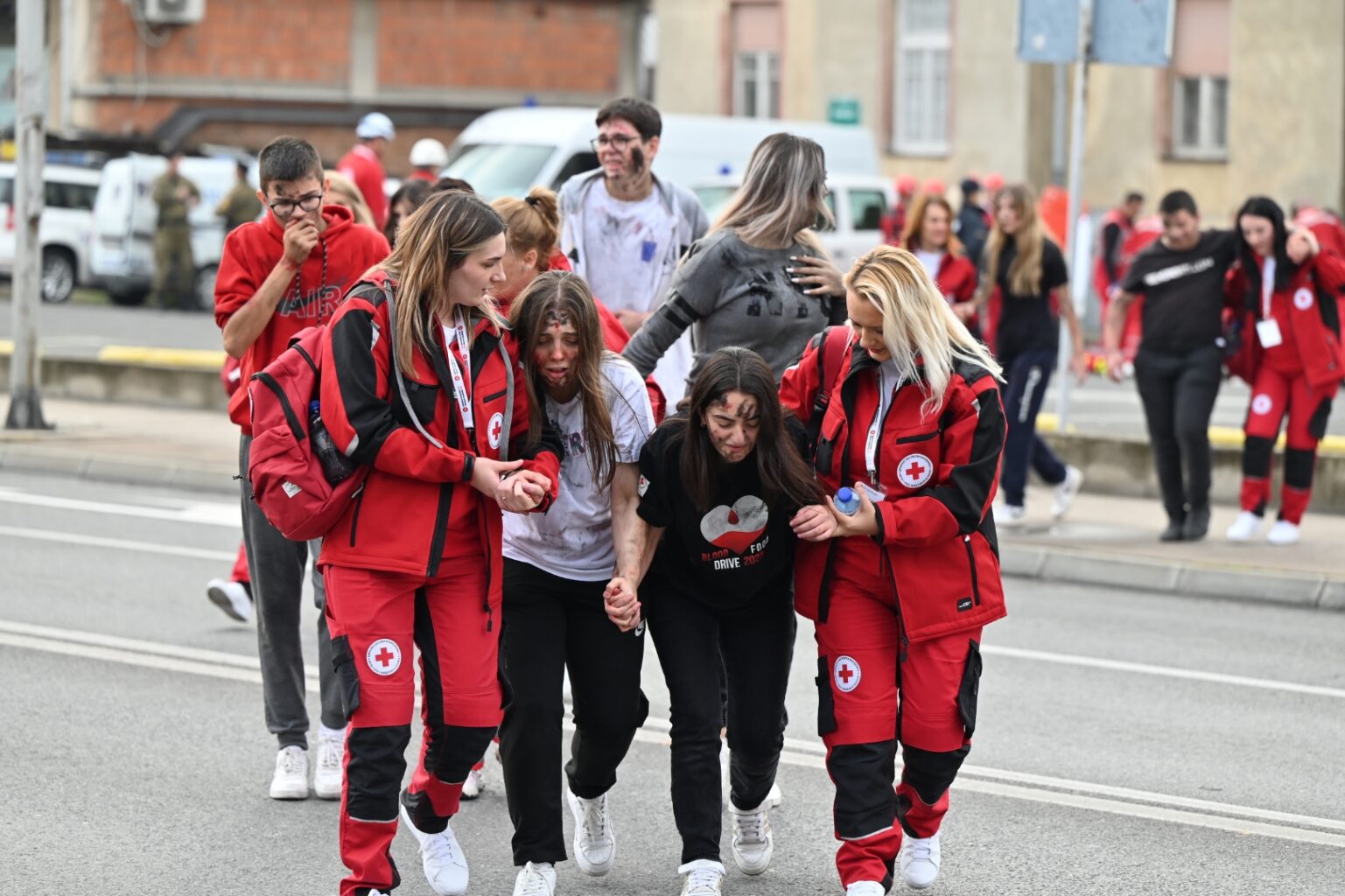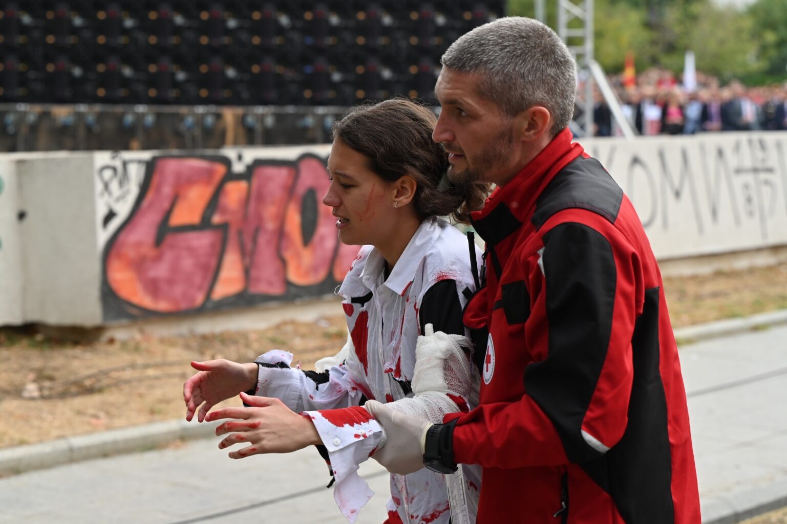 Со симулација на прва помош при итна ситуација – земјотрес, Црвениот крст денеска кај Градски Парк во Скопје ја одржа вежбата „Хуманитарен одговор 2023“.