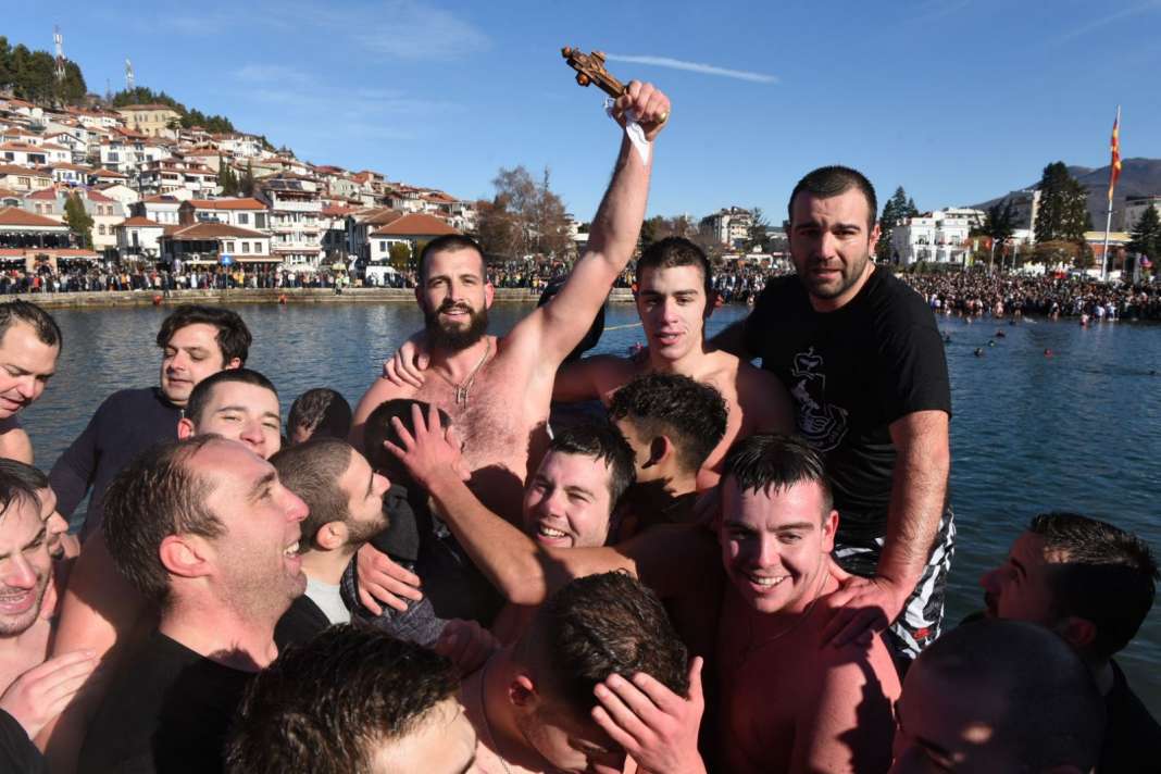 Охриѓанецот Мартин Гоџоски успеа да го извади Чесниот крст од осветените води на Охридското Езеро. Тој најдобро се снајде меѓу стотиците верници кои денеска скокаа по крстот во Охрид.