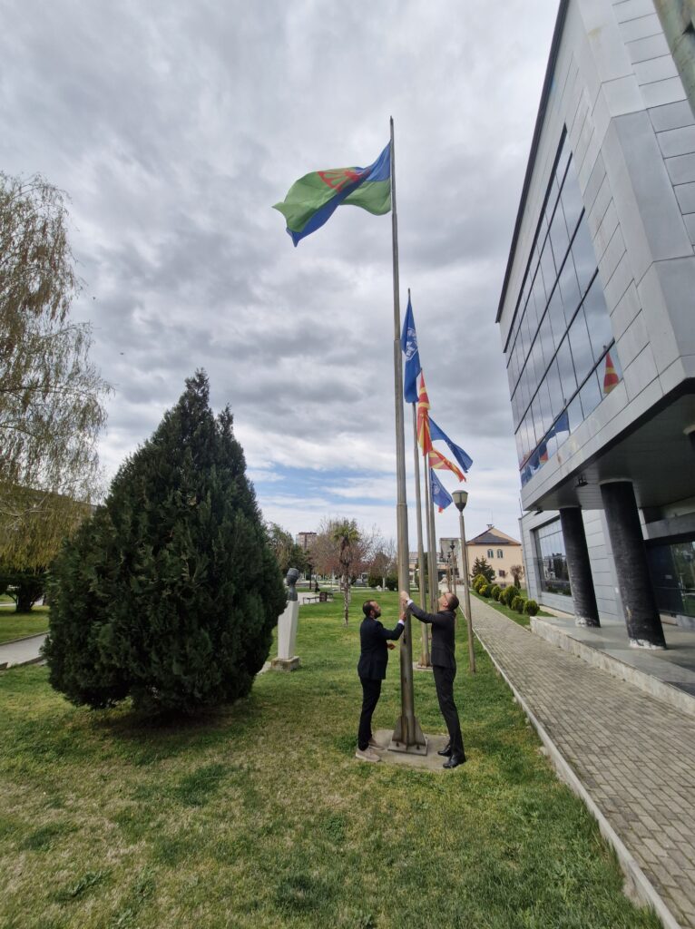 Со подигнување на знамето на ромската заедница, на јарболот пред