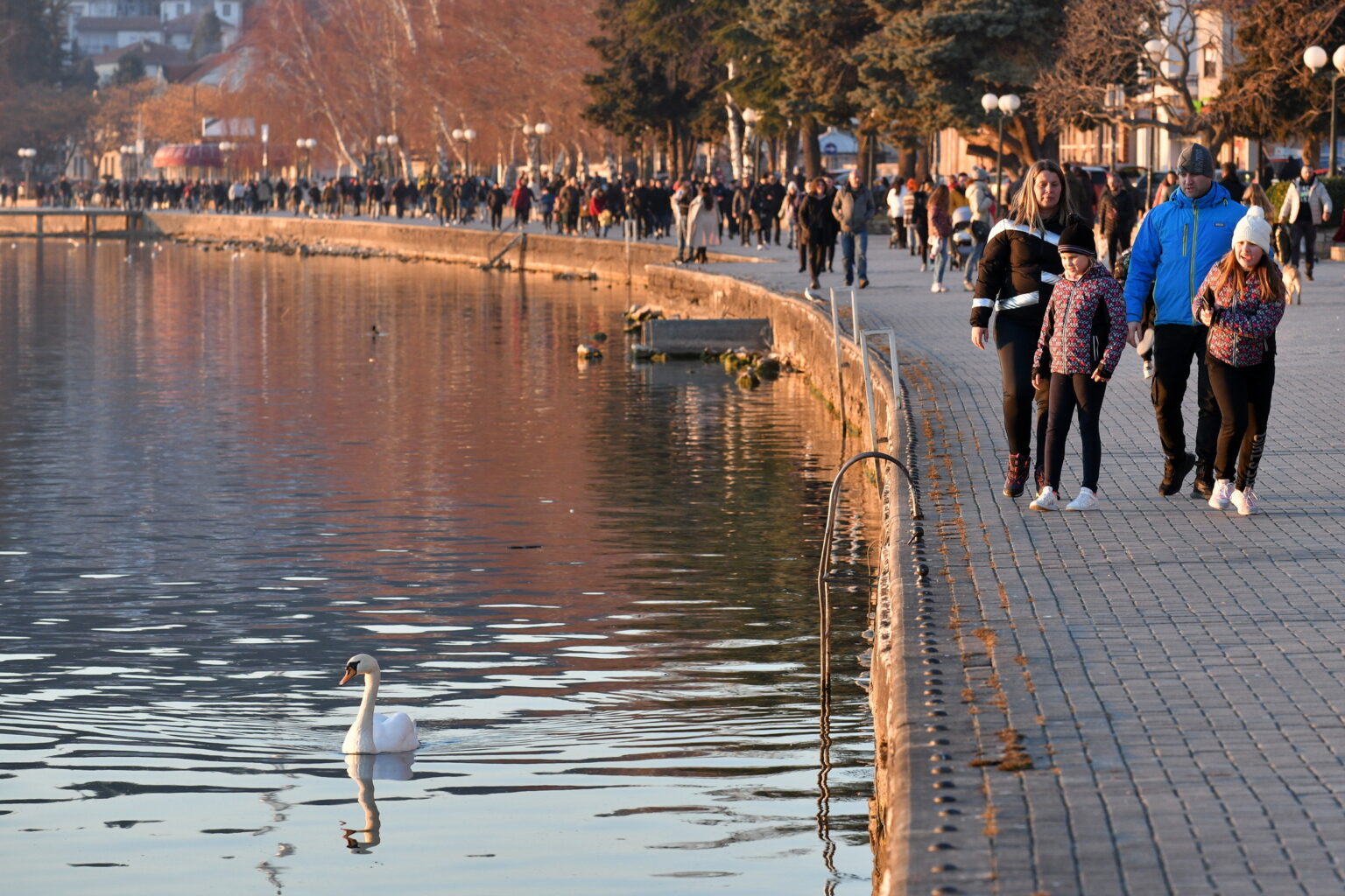 Иако се наоѓа на повисока надморска височина (695 метри) од повеќето градови во Македонија, оваа зима во Охрид нема снег. Забелени се само врвовите на Галичица.